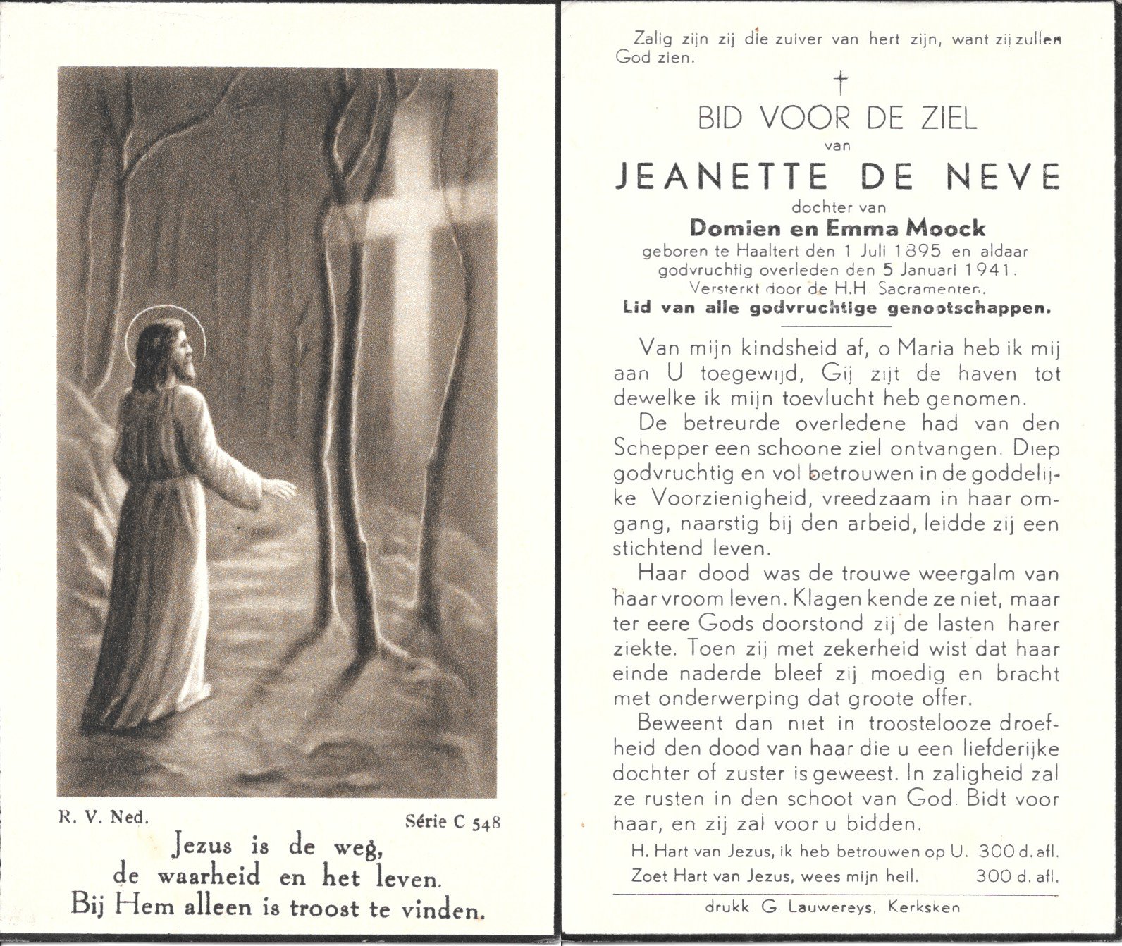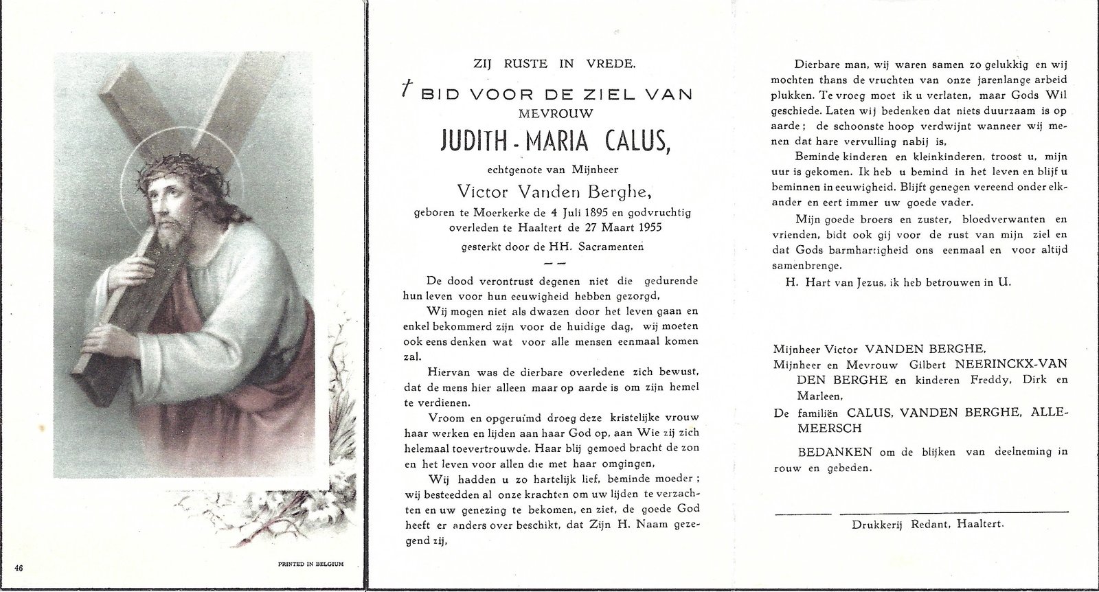 | Calus Judith-Maria | Vanden Berghe Victor | Moerkerke | 04/07/1895 | Haaltert | 27/03/1955 |