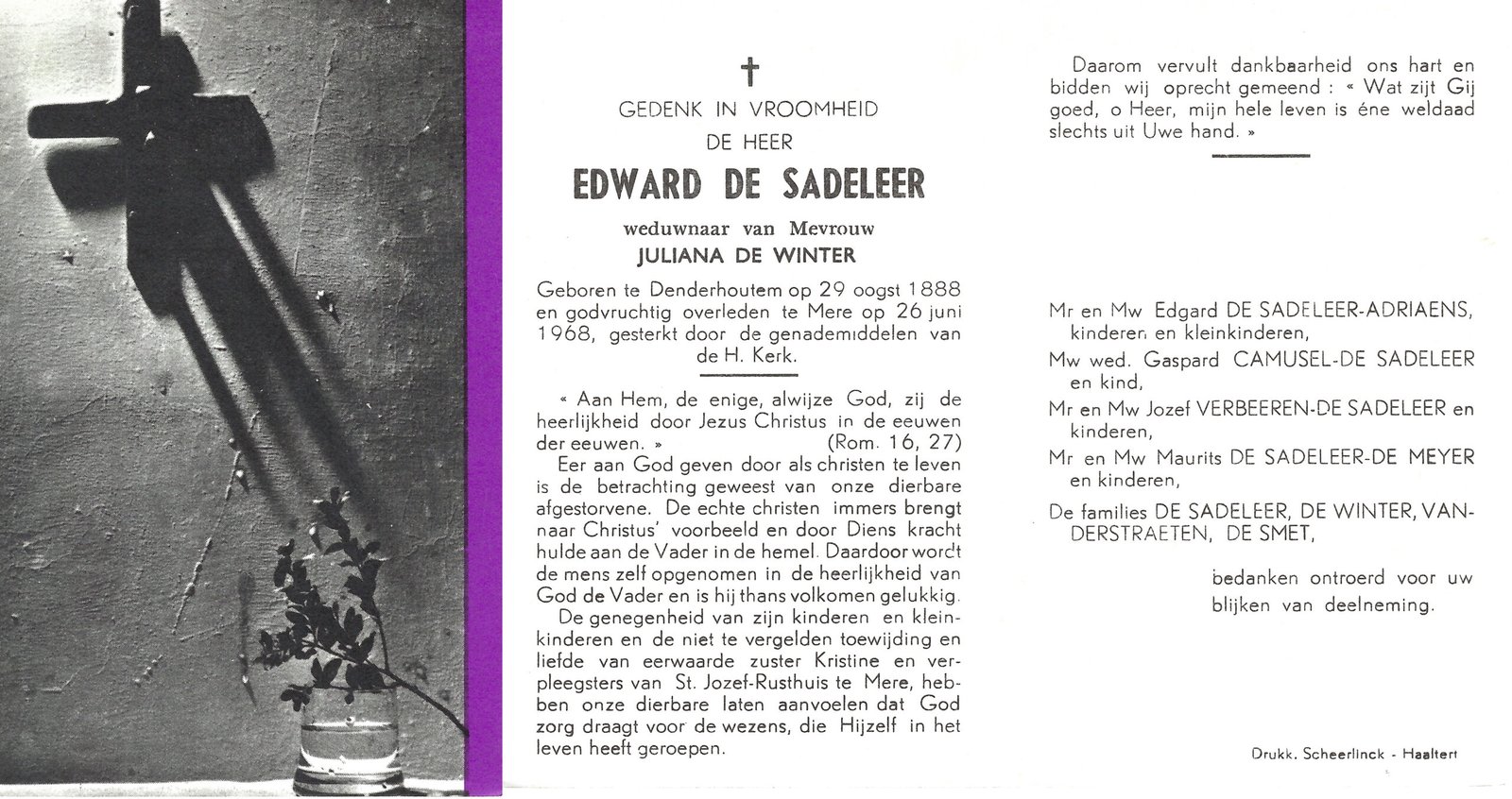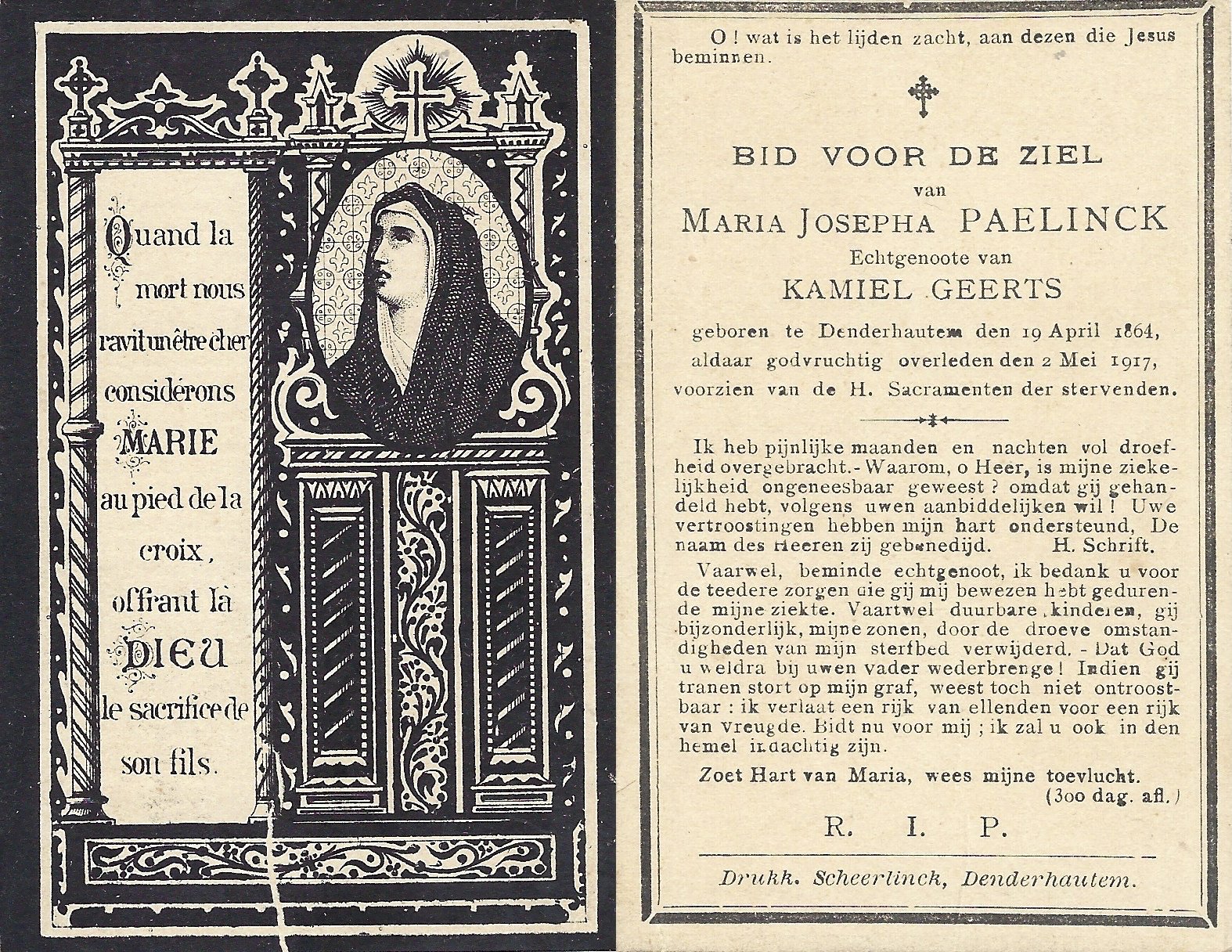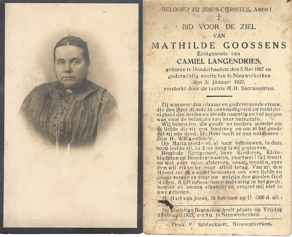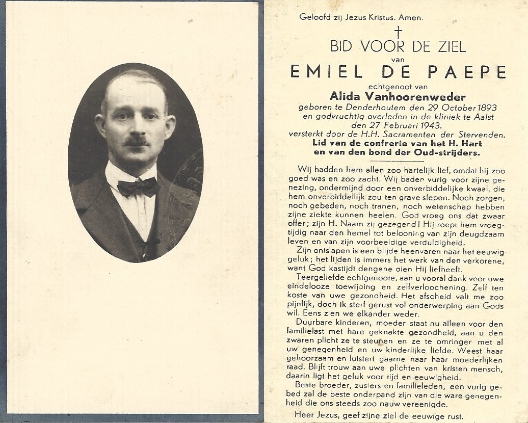 | De Buysscher Carolina Maria | De Schepper Jozef | Denderhoutem | 18/05/1888 | Denderhoutem | 09/09/1944 |