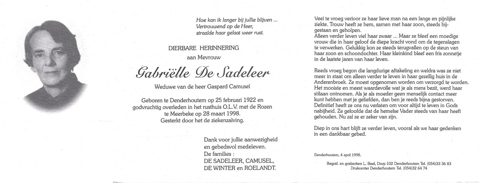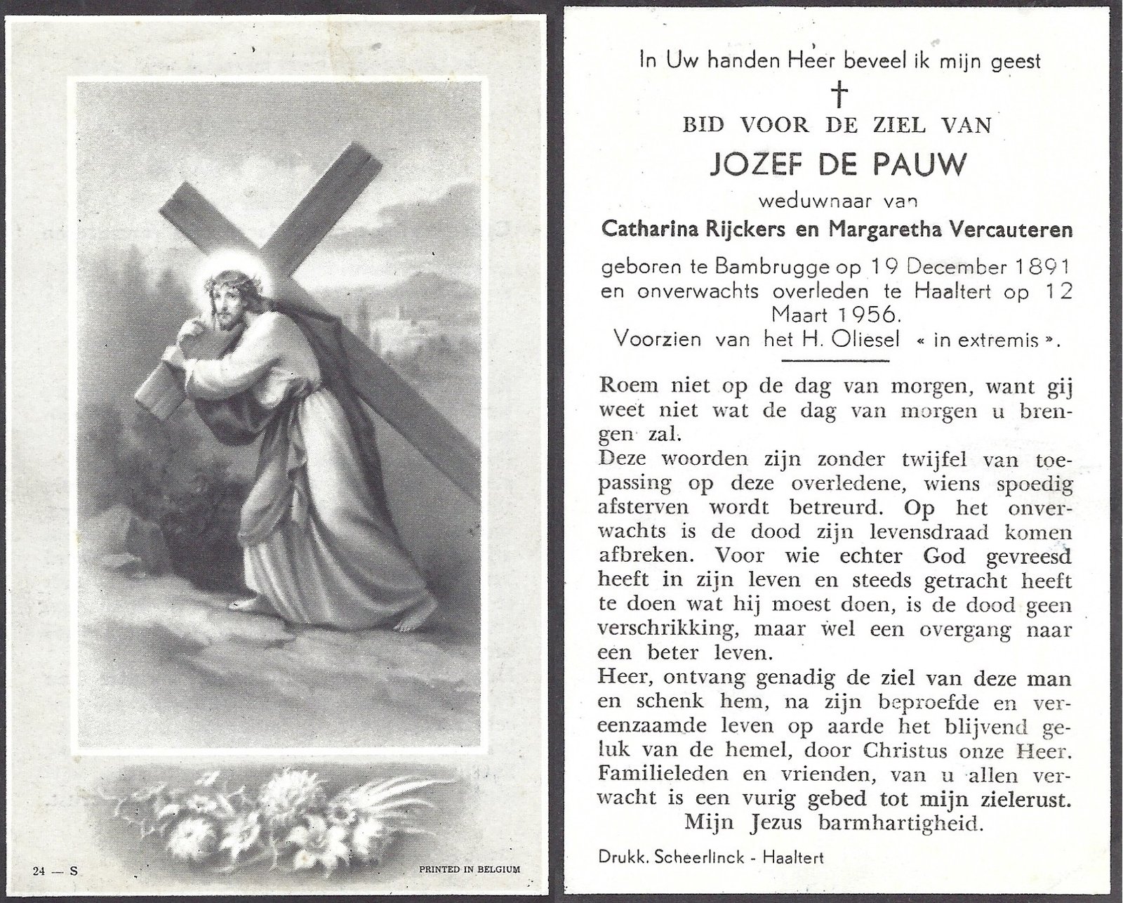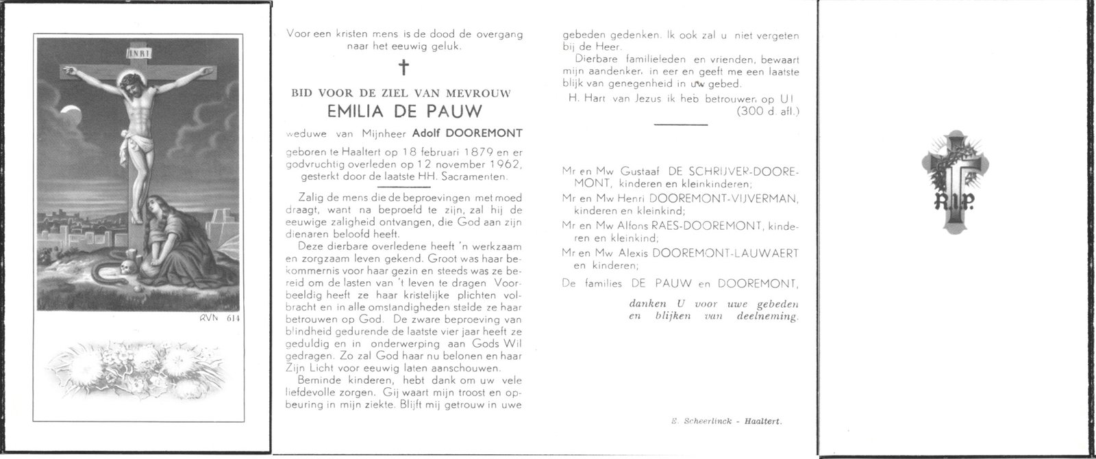 | De Buysscher Carolina Maria | De Schepper Jozef | Denderhoutem | 18/05/1888 | Denderhoutem | 09/09/1944 |