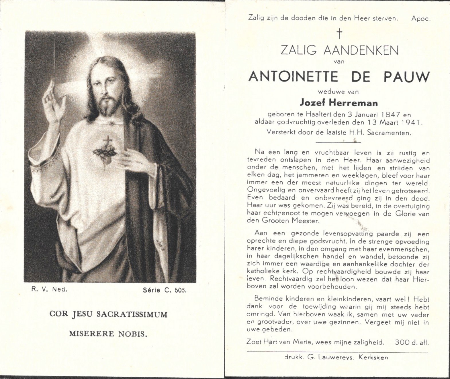 | Coppens Stefanie | Heyman Alexis | Kerksken | 25/08/1869 | Haaltert | 10/08/1947 |