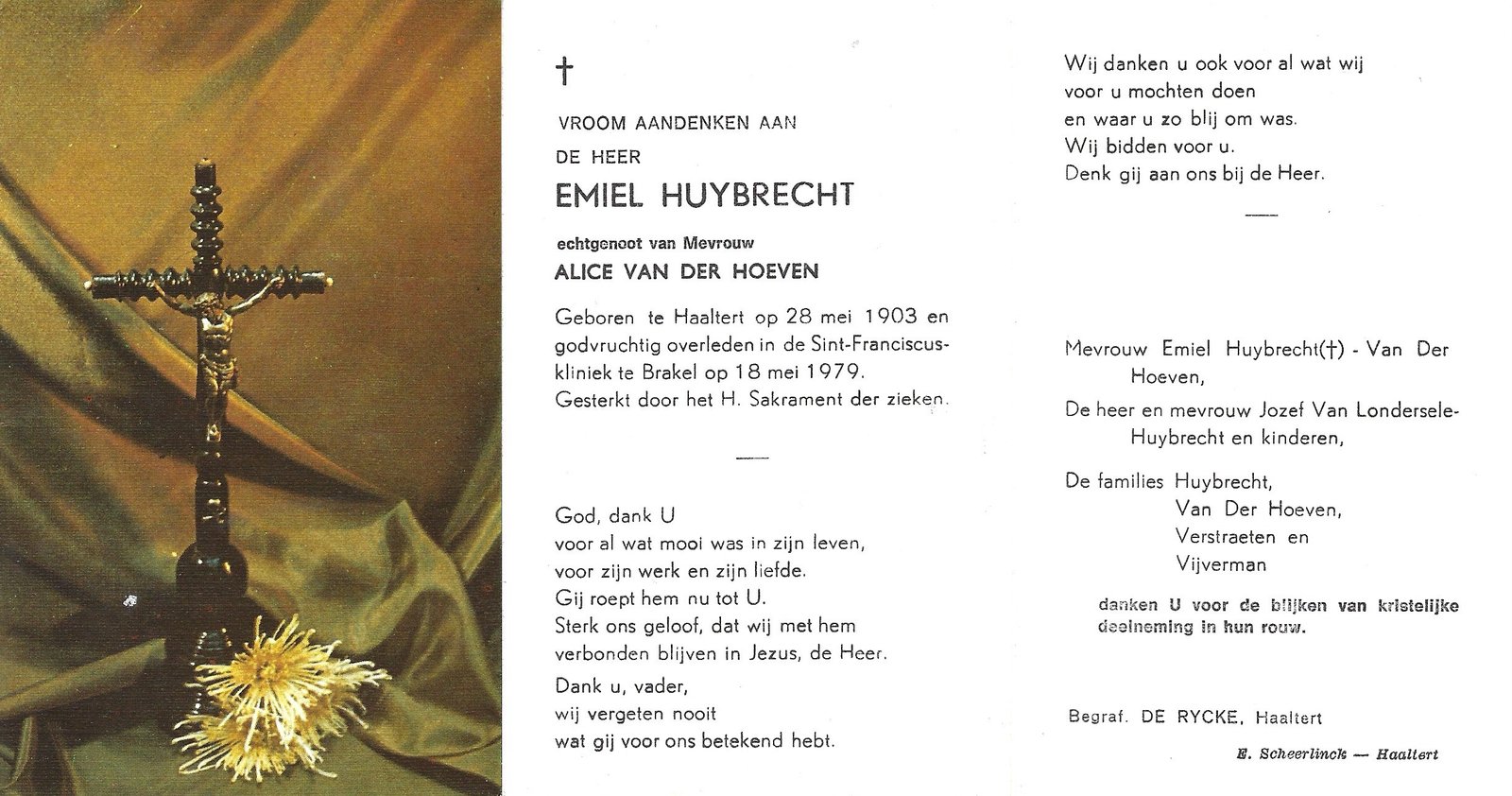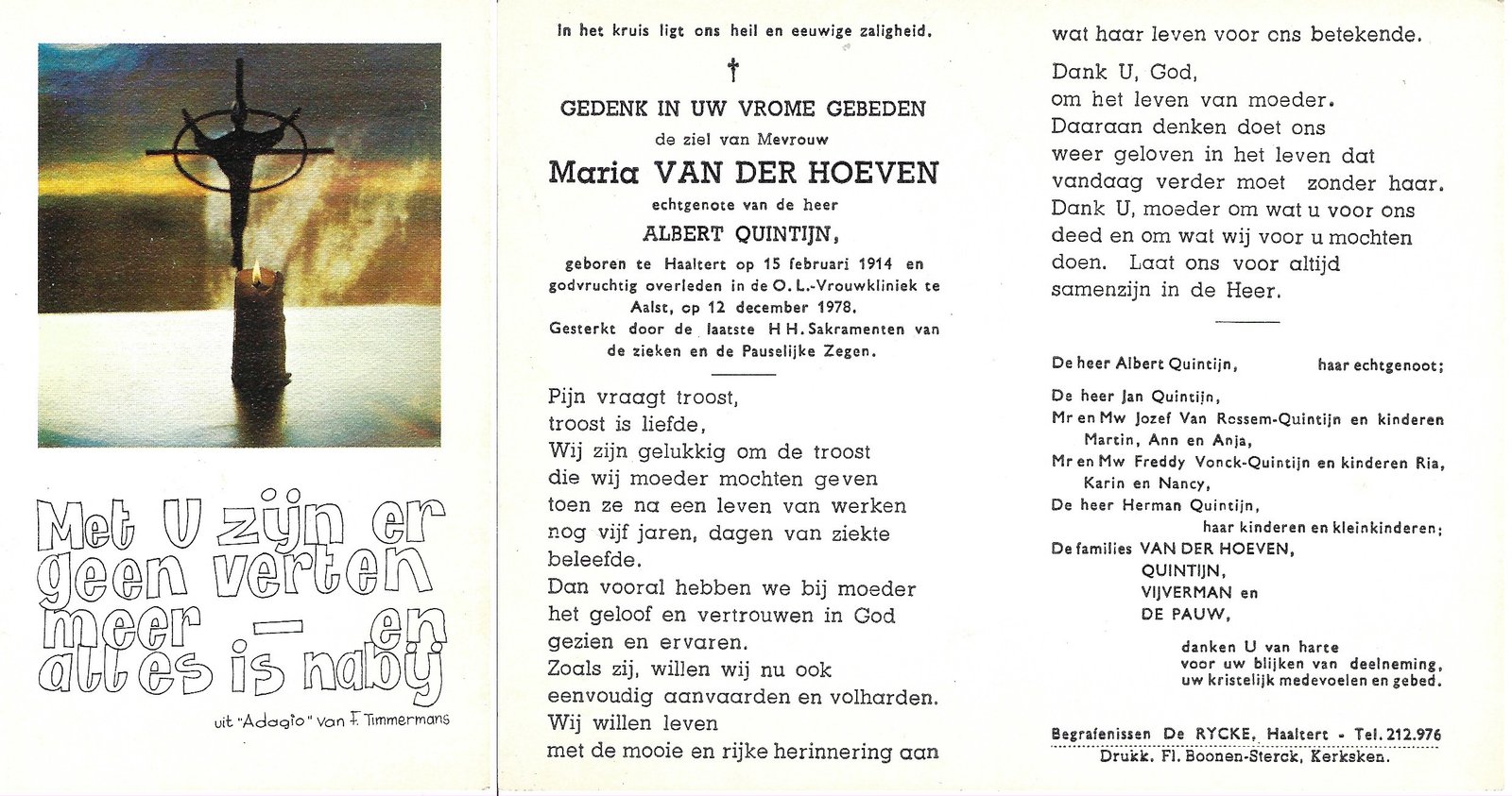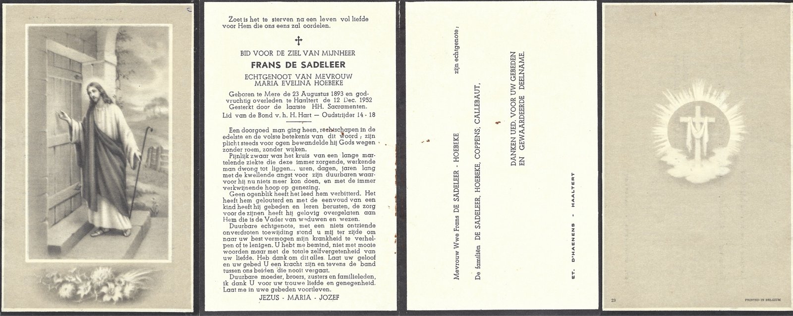 | Van Der Hoeven Maria | Quintijn Albert | Haaltert | 15/02/1914 | Aalst | 12/12/1978 |