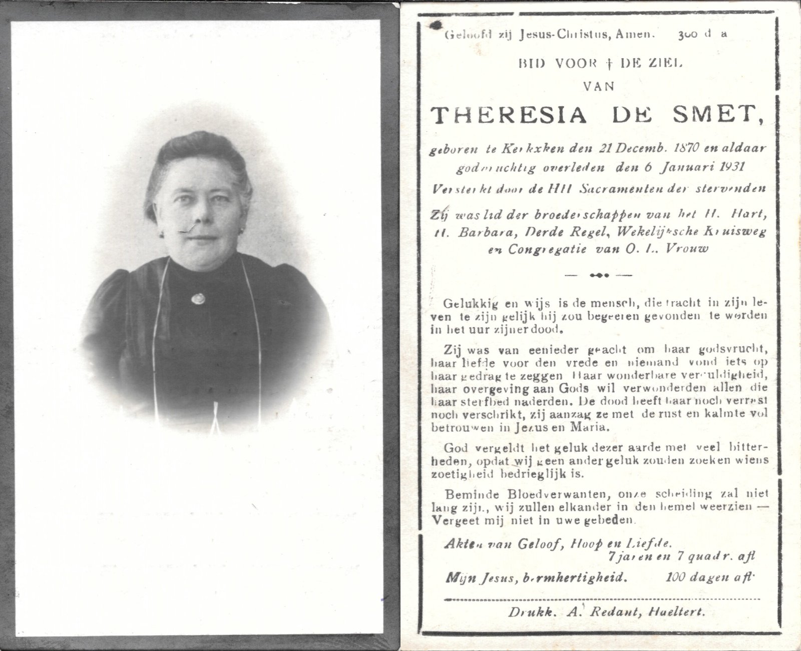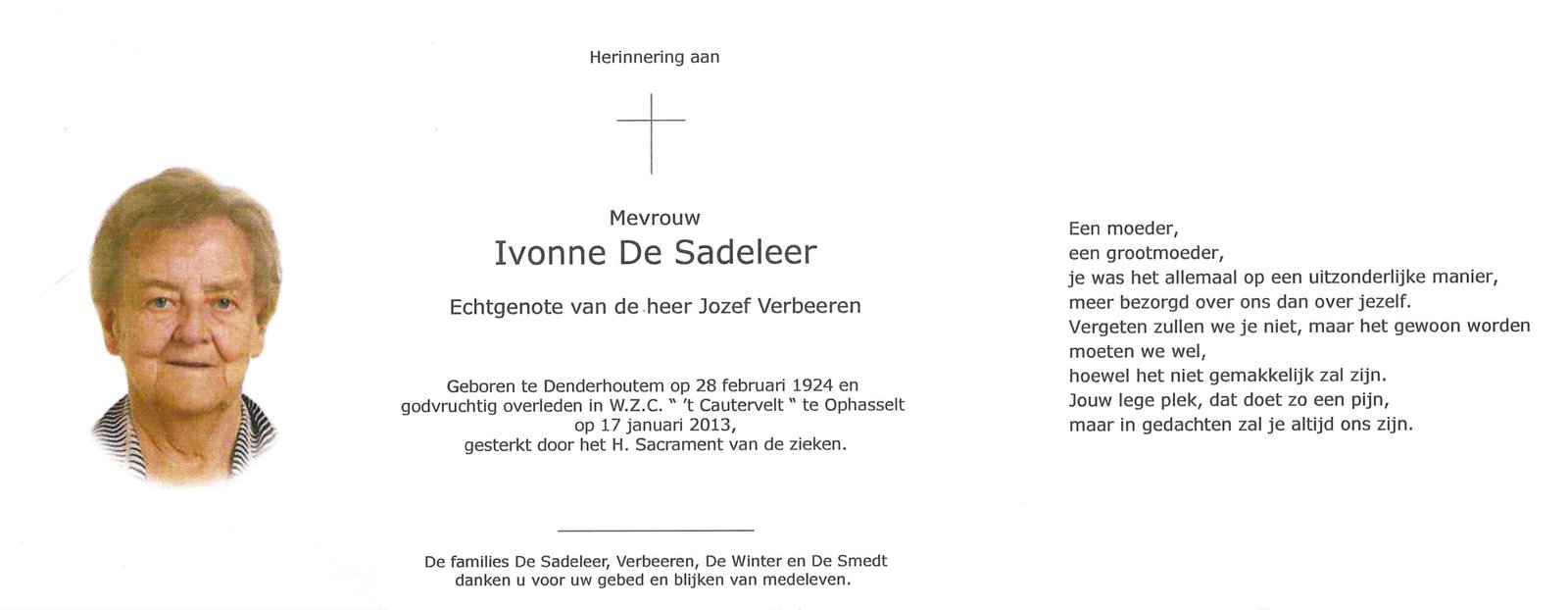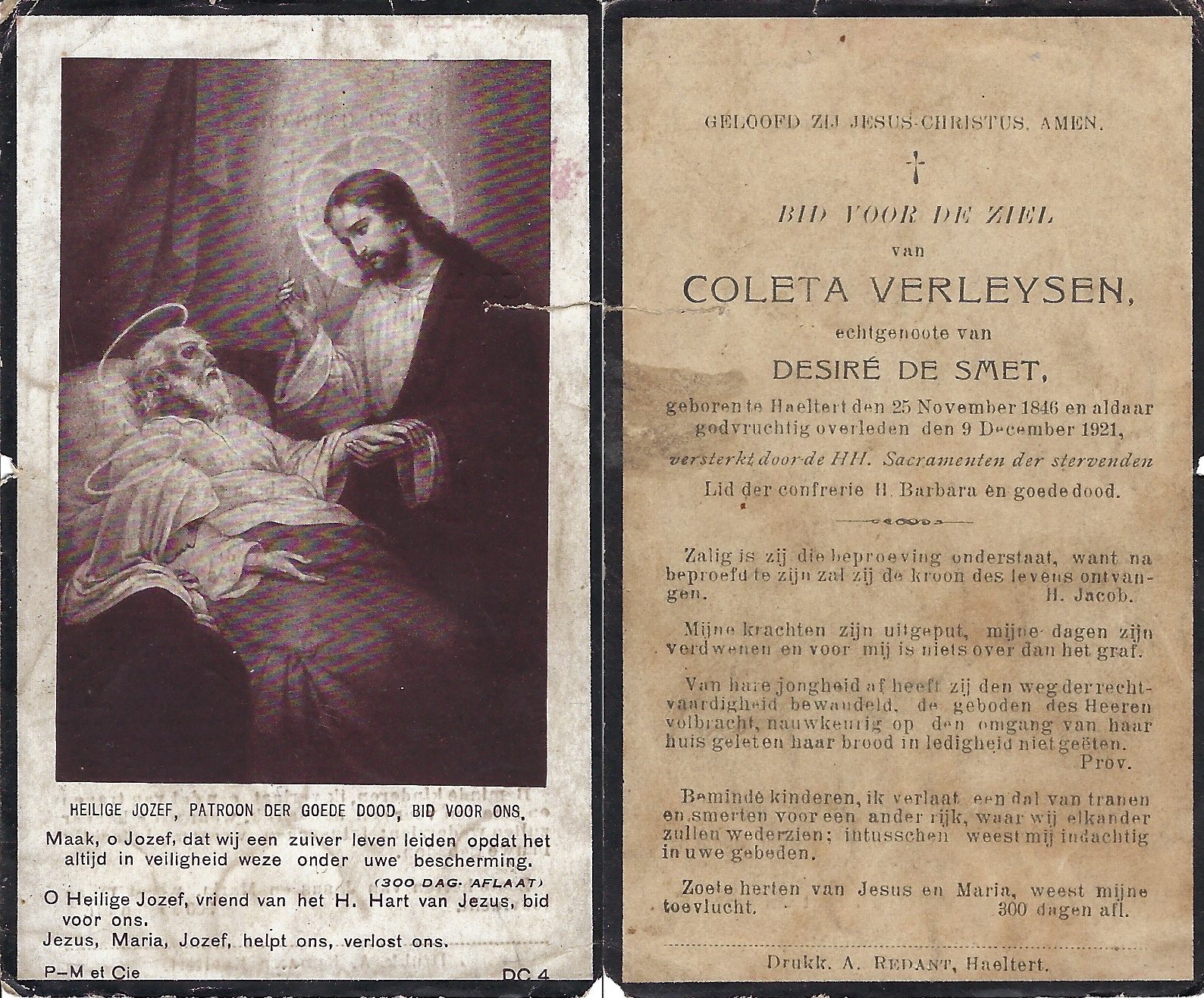 | Verleysen Coleta | De Smet Desiré | Haaltert | 25/11/1846 | Haaltert | 09/12/1921 |