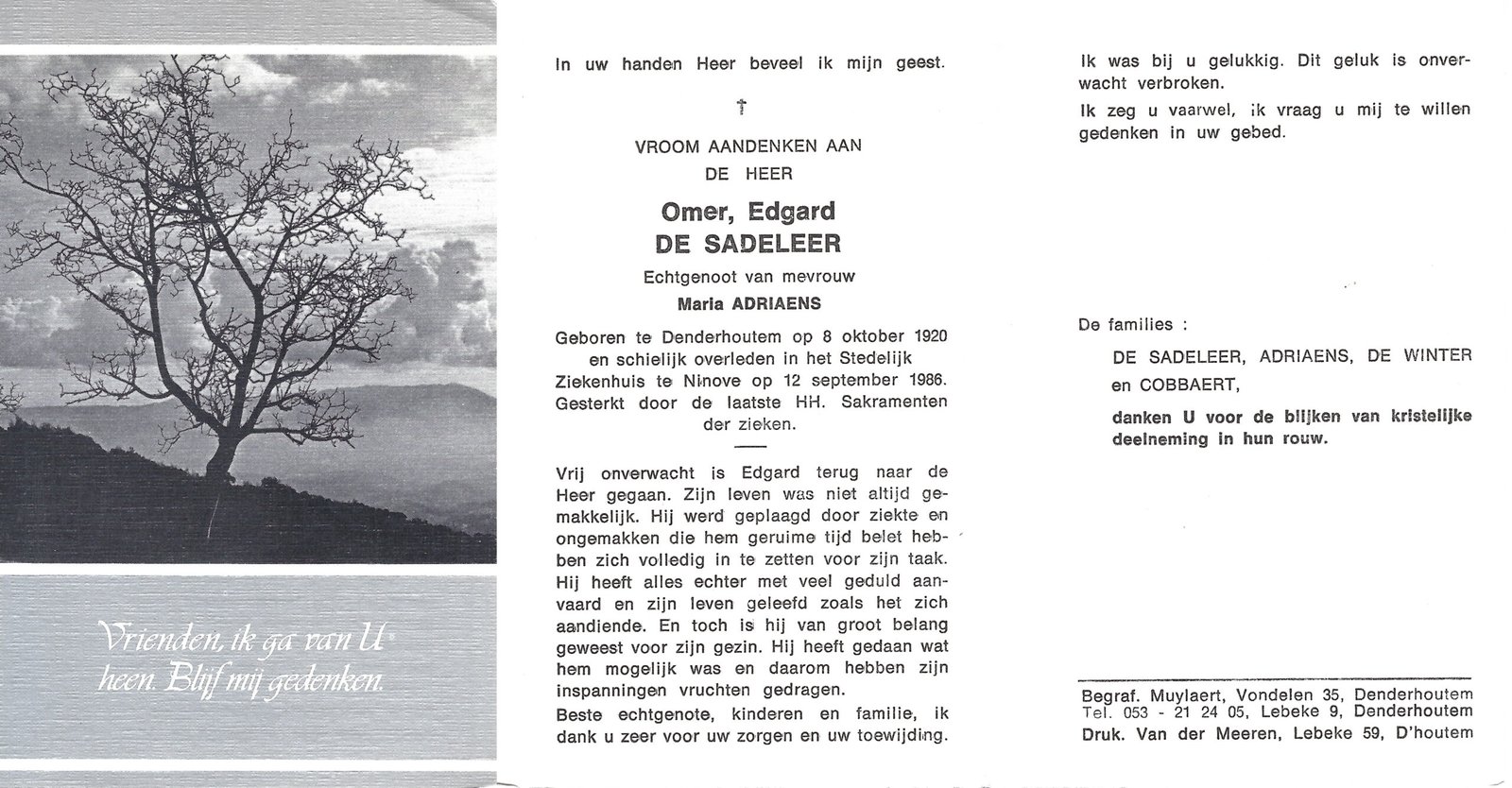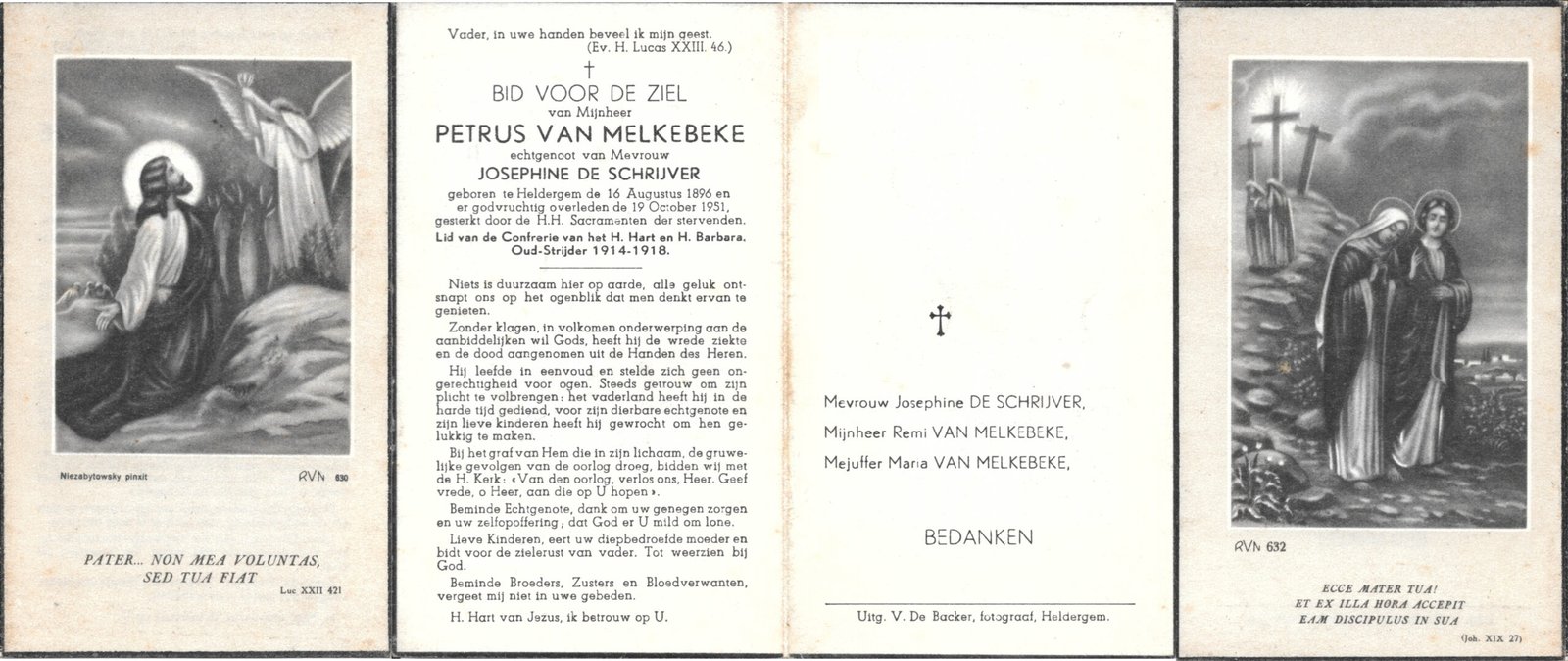 | Van Melkebeke Petrus | De Schrijver Josephine | Heldergem | 16/08/1896 | Heldergem | 19/10/1951 |
