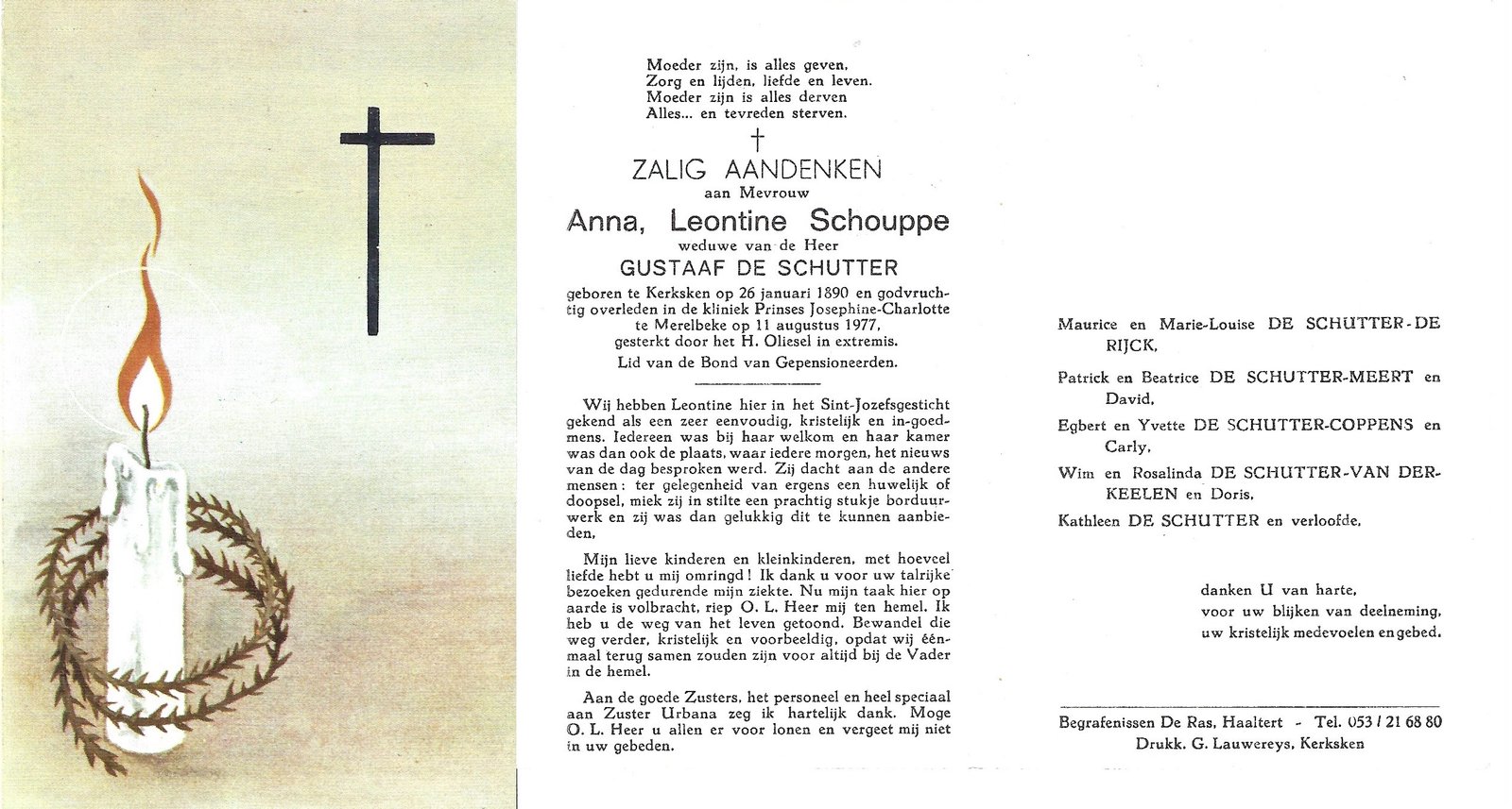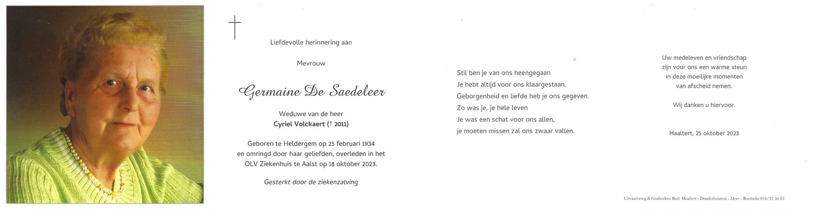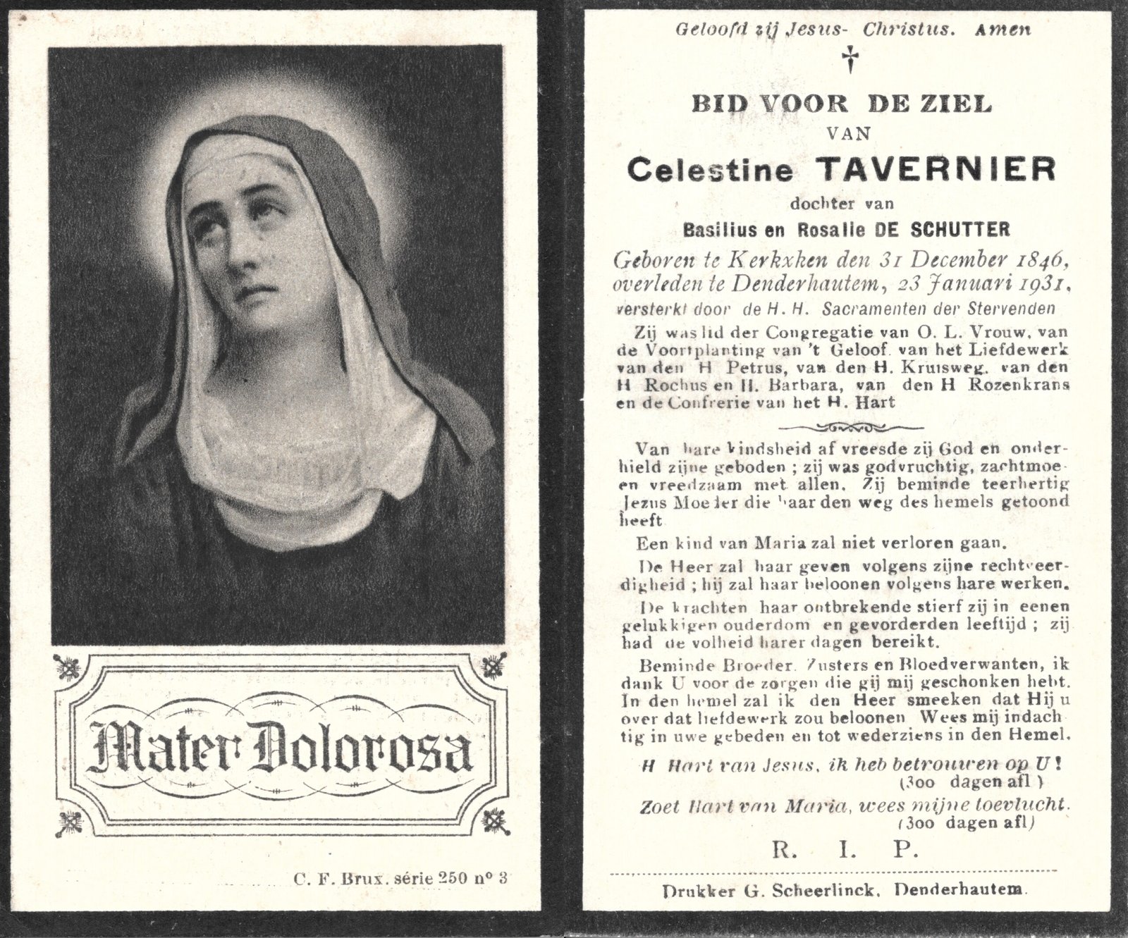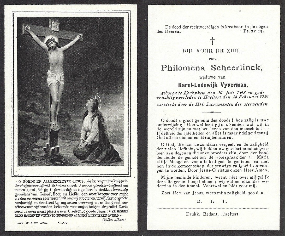 | Van Landuyt Maria-Celina | Vercruyssen Emiel | Kerksken | 20/06/1857 | Haaltert | 29/12/1930 |