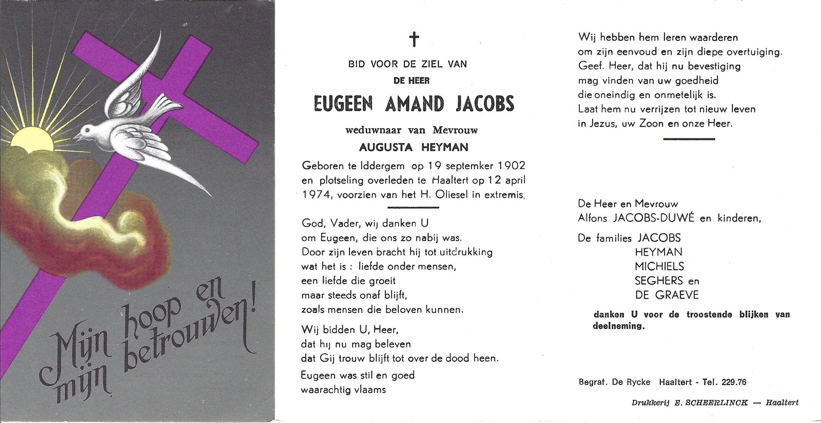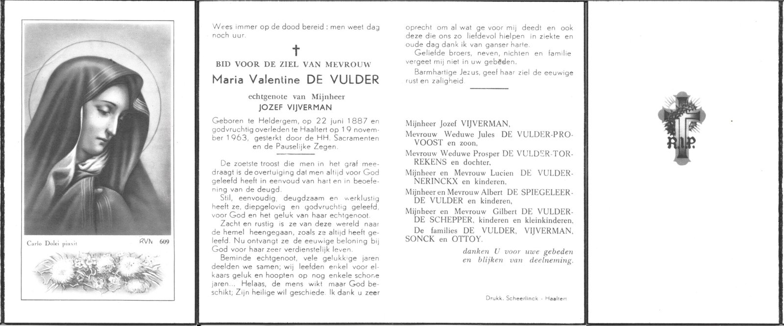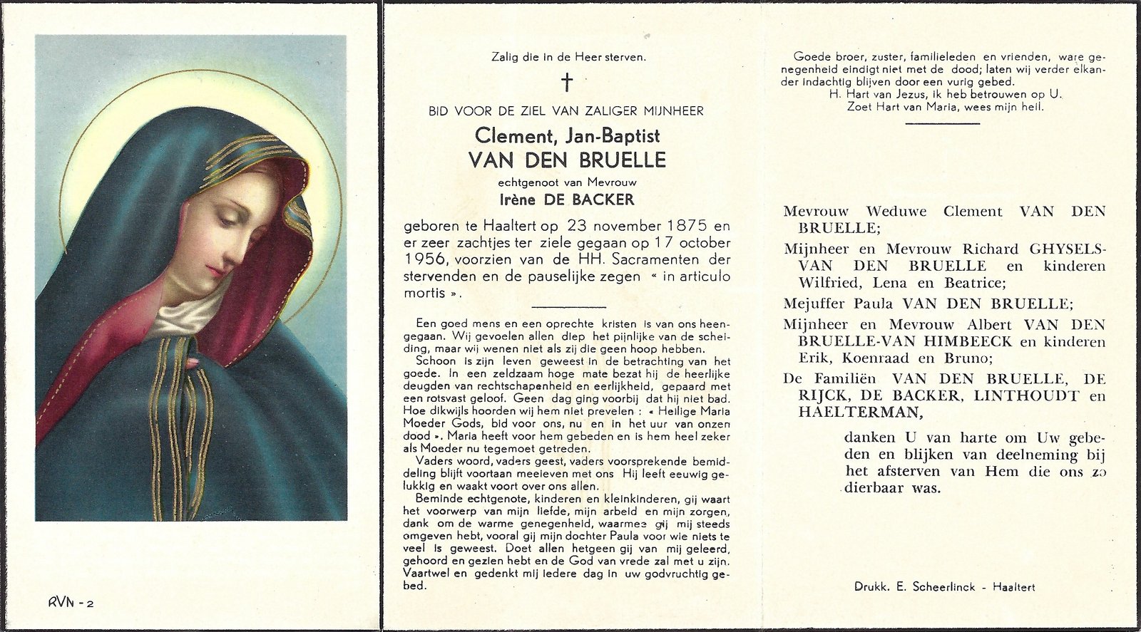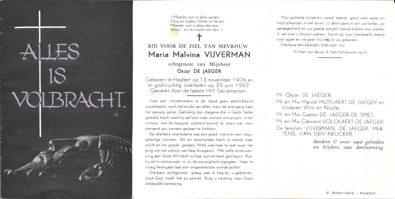 | Vijverman Maria-Malvina | De Jaeger Oscar | Haaltert | 13/11/1906 | Haaltert | 25/06/1962 |