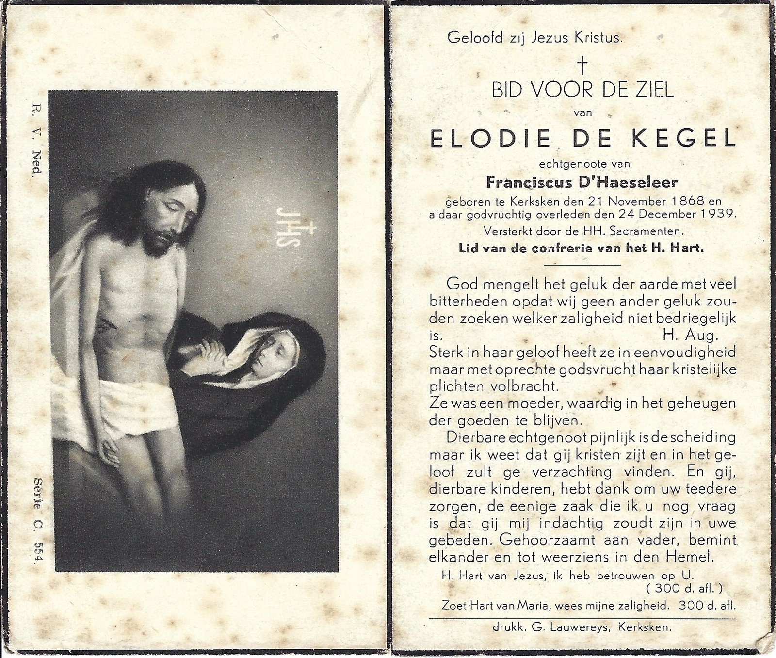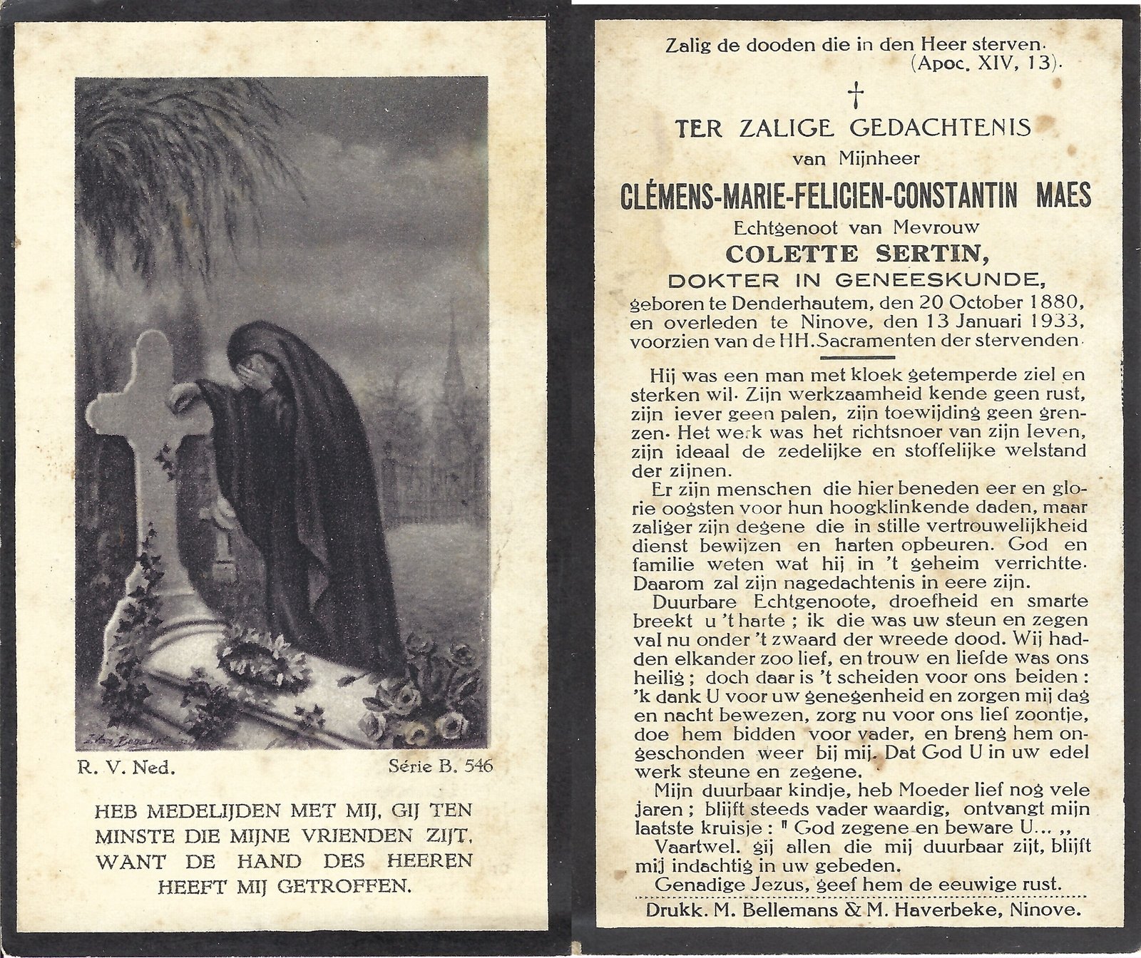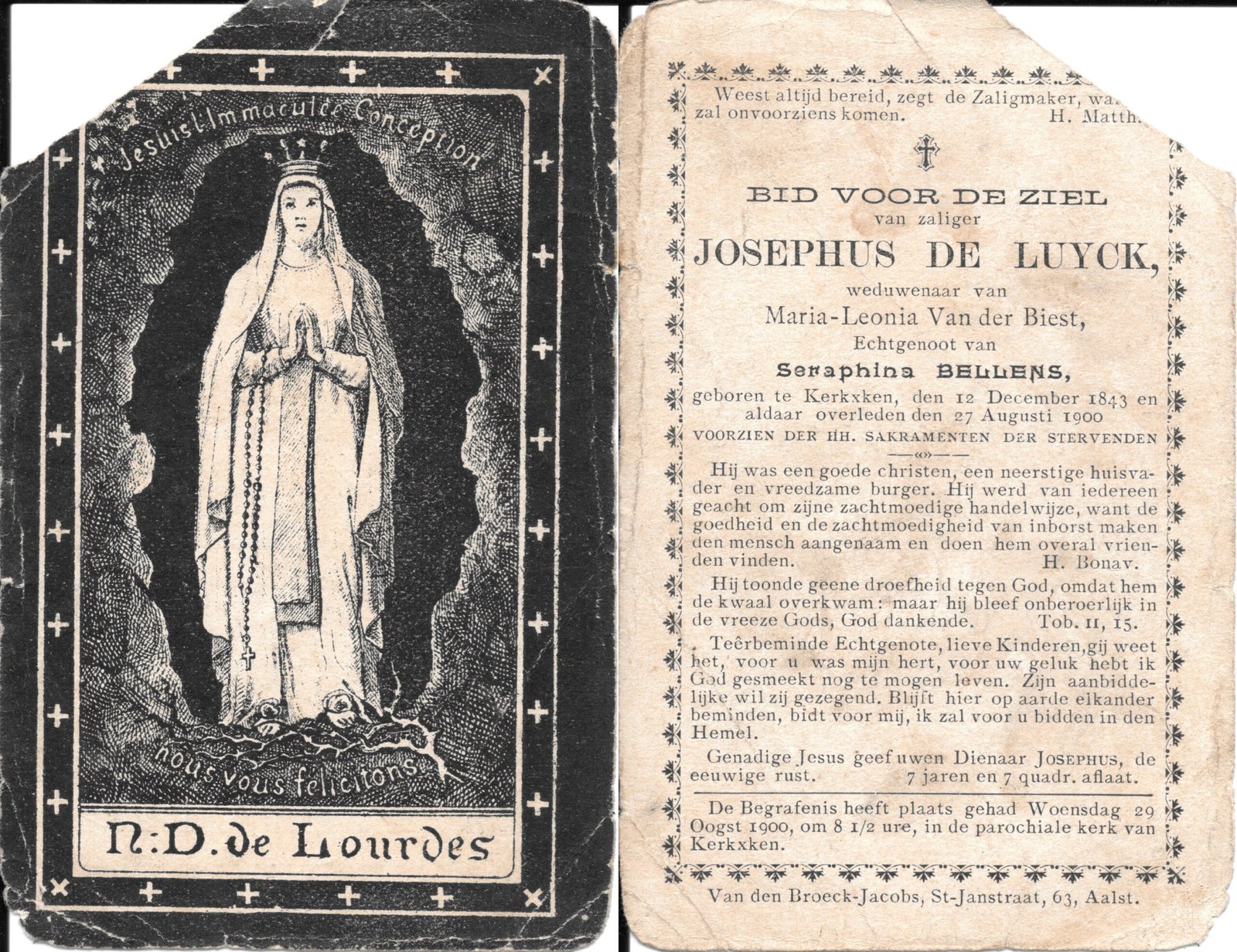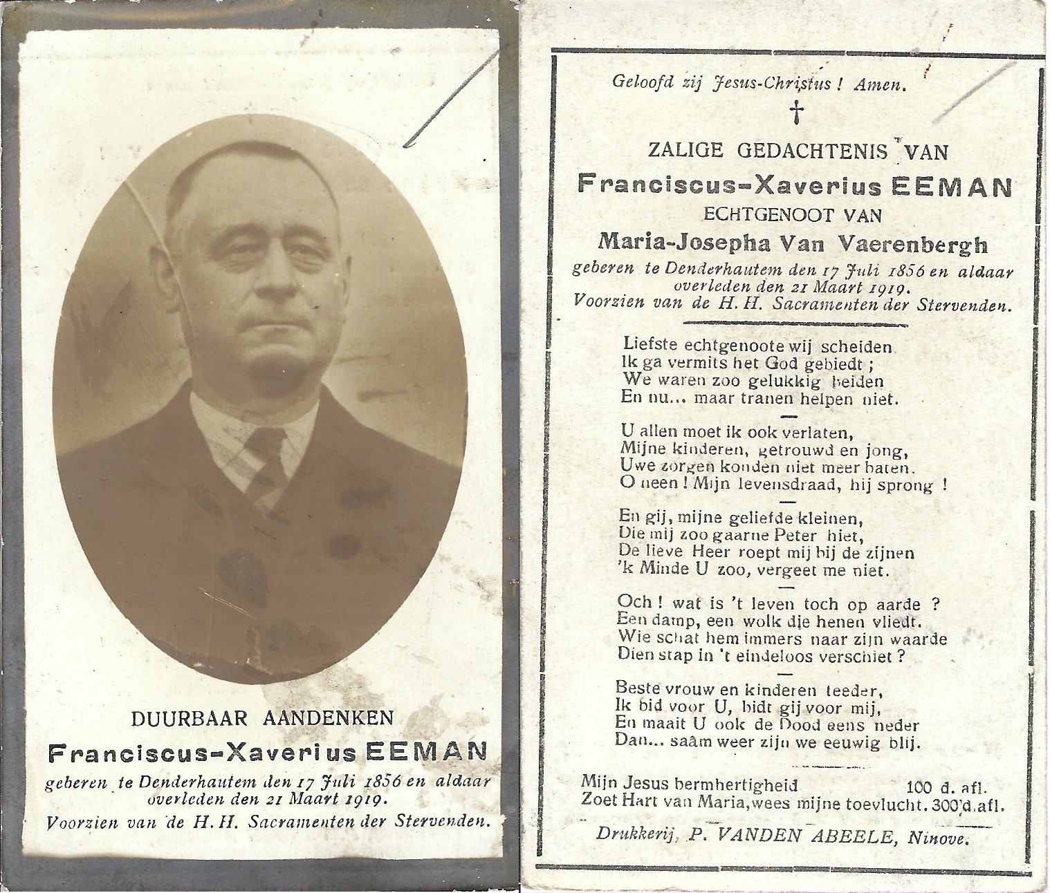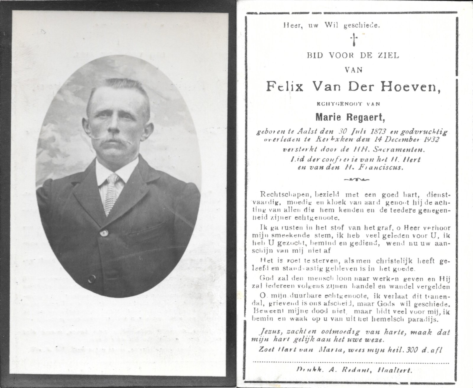 | Van Der Hoeven Felix | Regaert Marie | Aalst | 30/07/1873 | Kerksken | 14/12/1932 |
