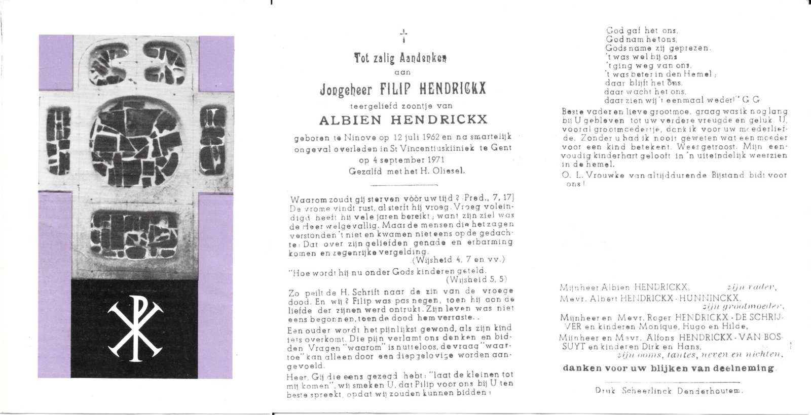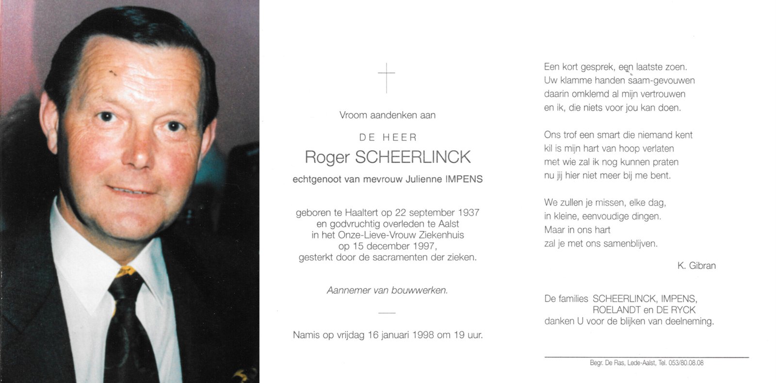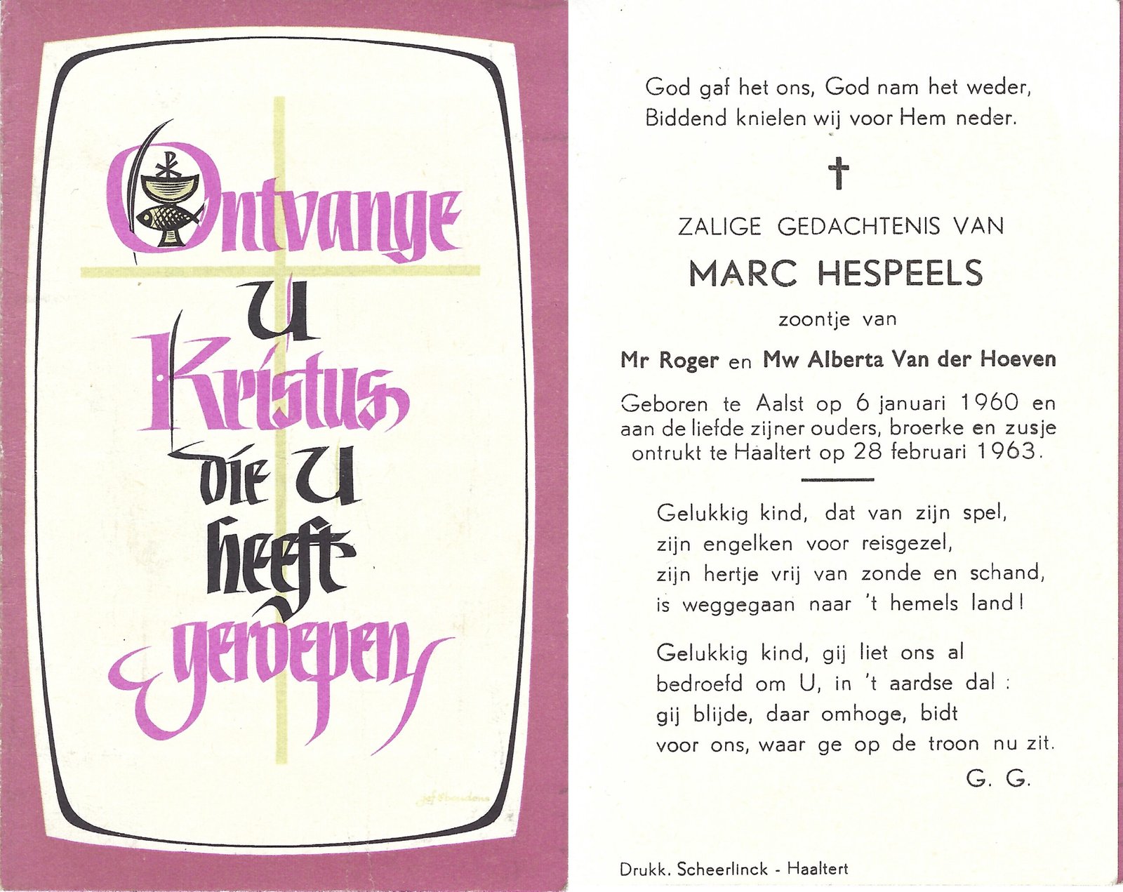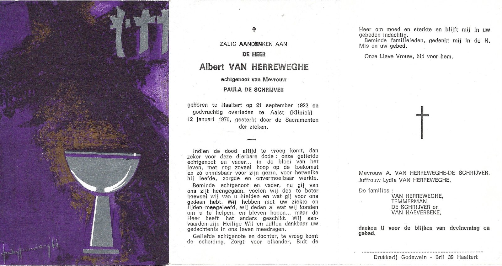 | Van Herreweghe Albert | De Schrijver Paula | Haaltert | 21/09/1922 | Aalst | 12/01/1970 |