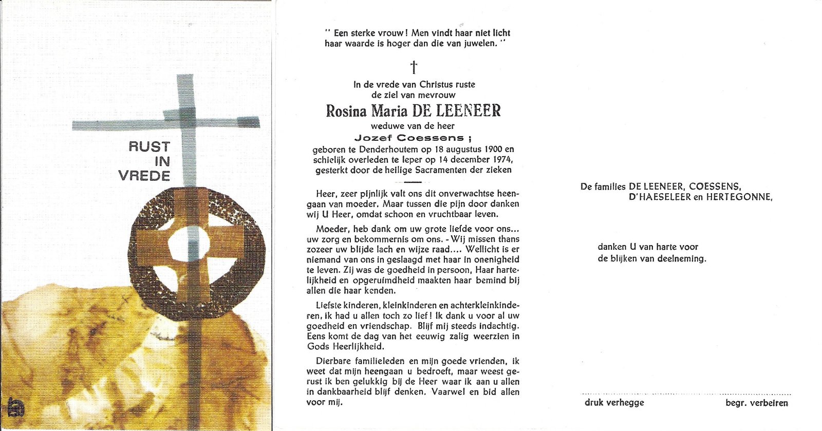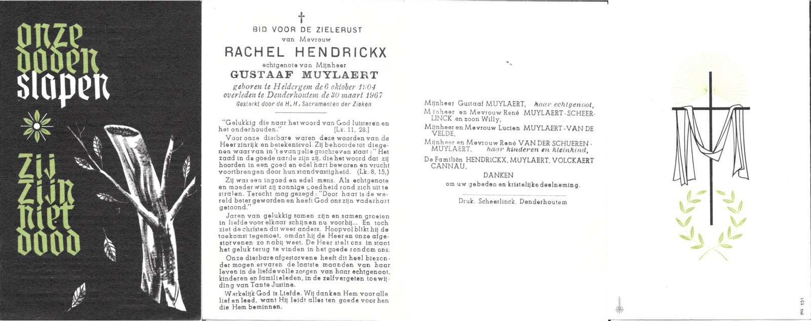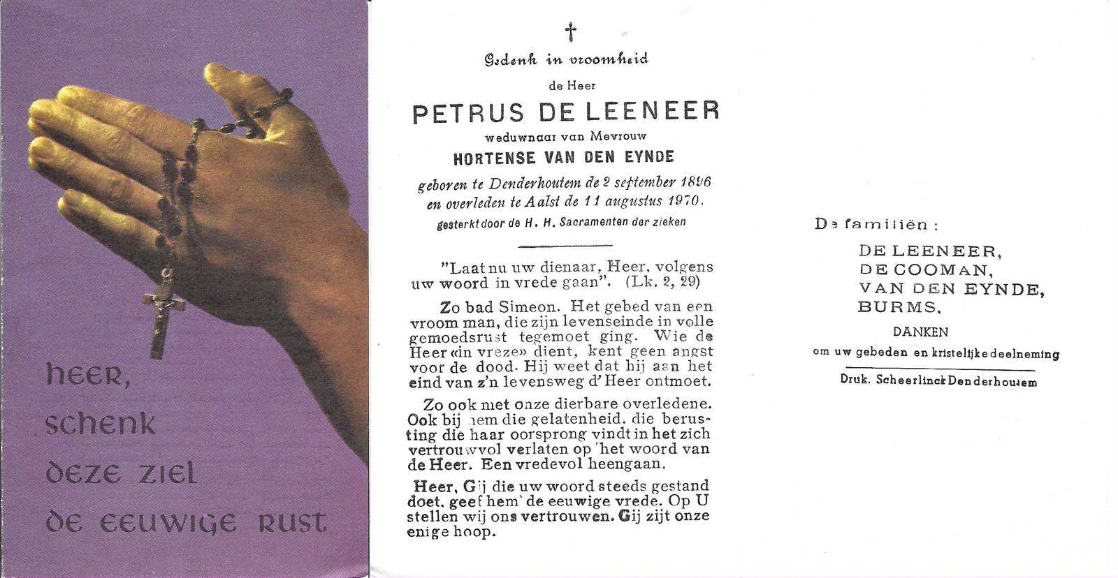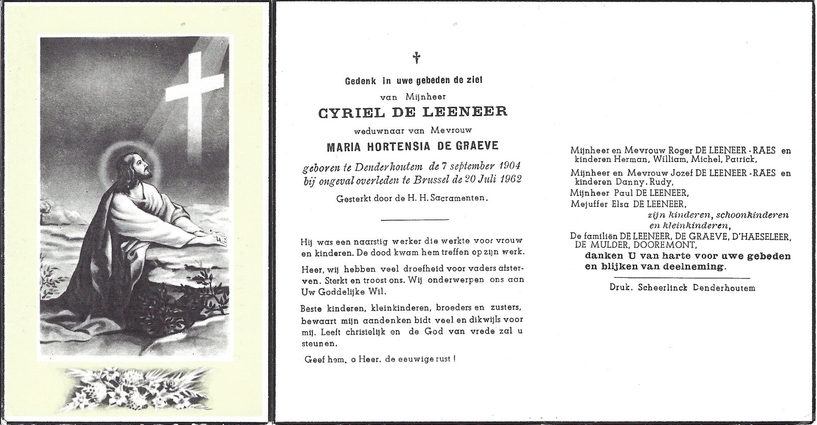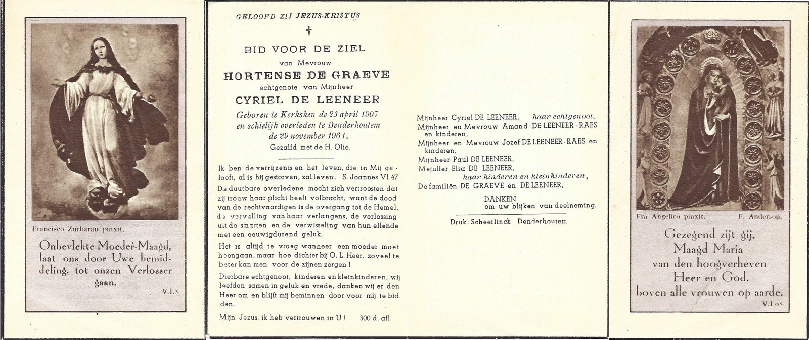 | De Graeve Hortense | De Leeneer Cyriel | Kerksken | 23/04/1907 | Denderhoutem | 29/11/1961 |