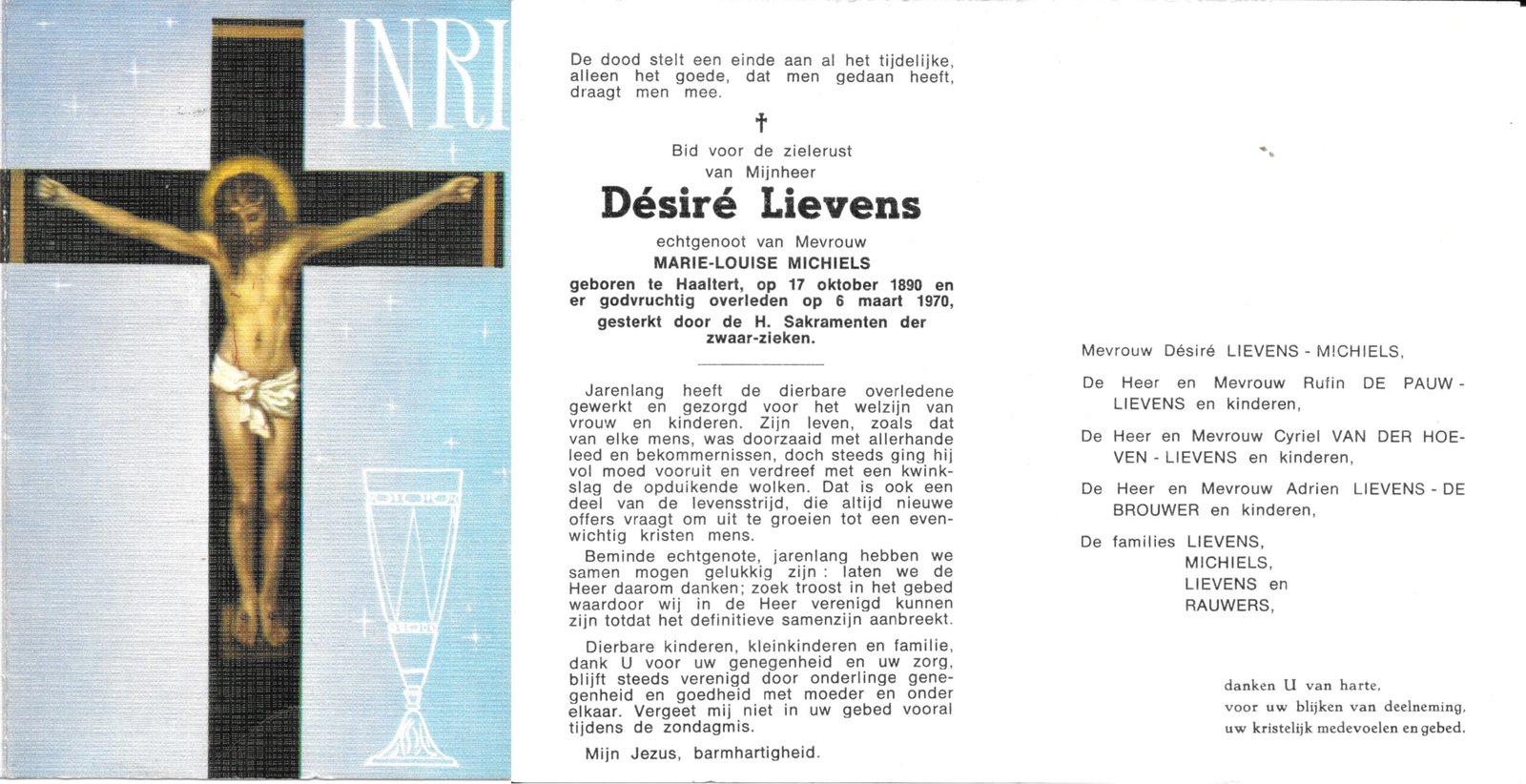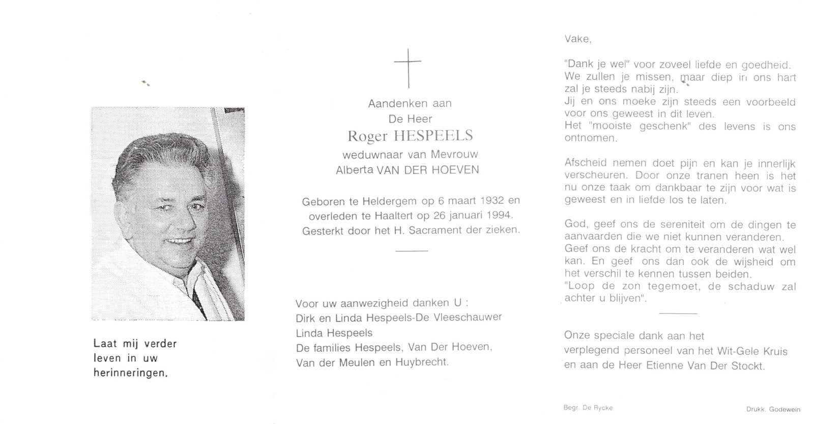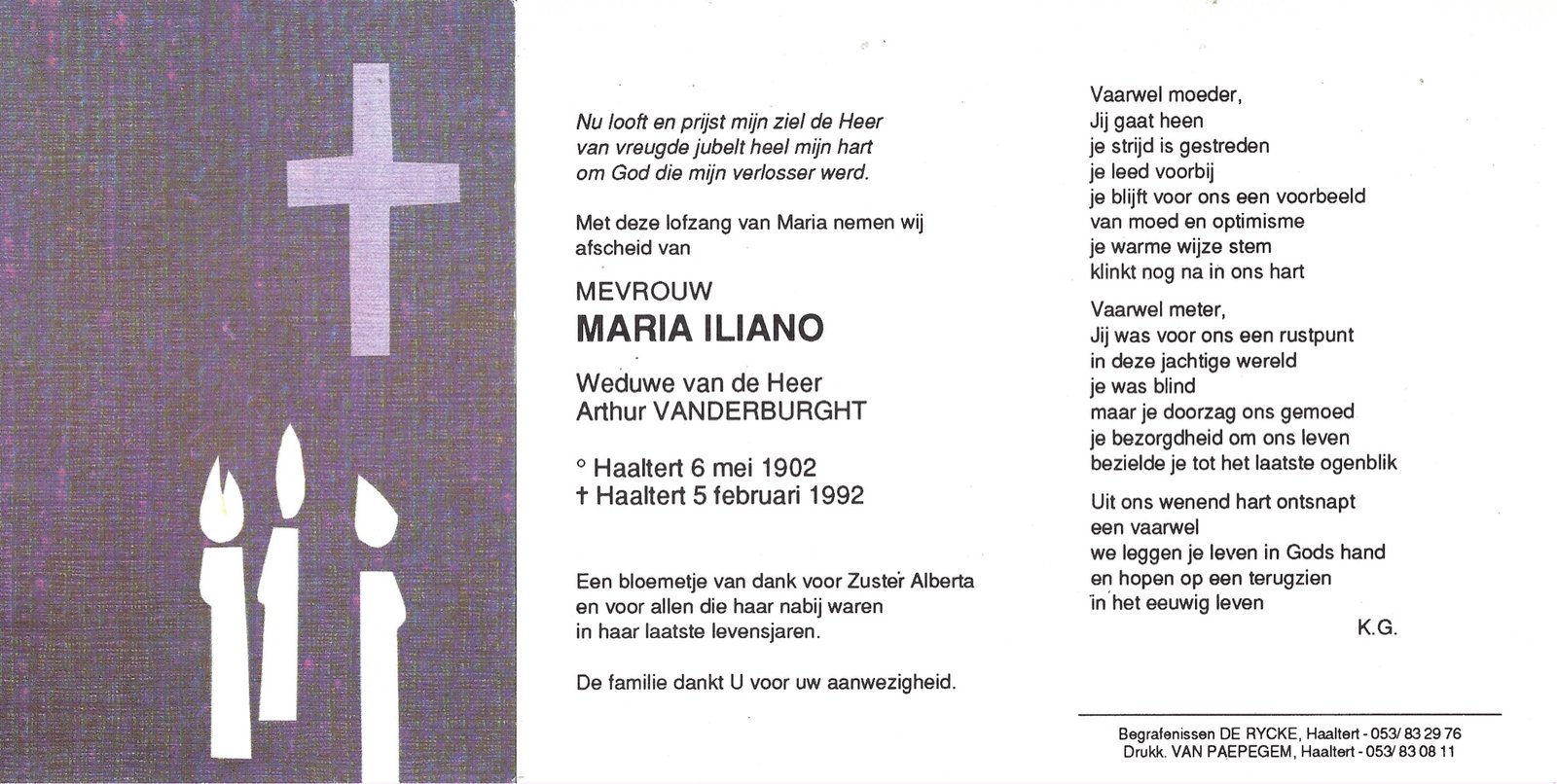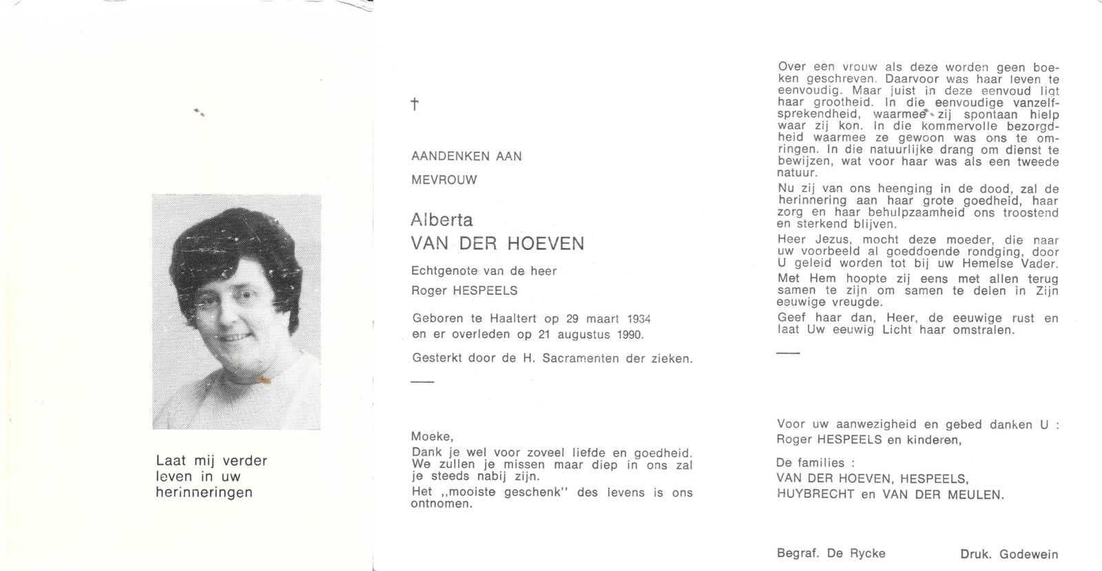 | Van Der Hoeven Alberta | Hespeels Roger | Haaltert | 29/03/1934 | Haaltert | 21/08/1990 |