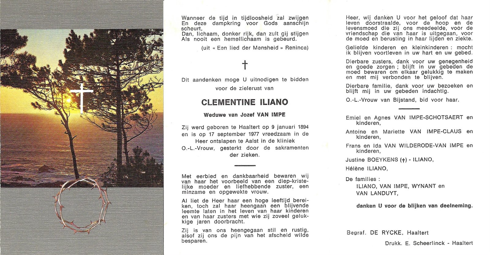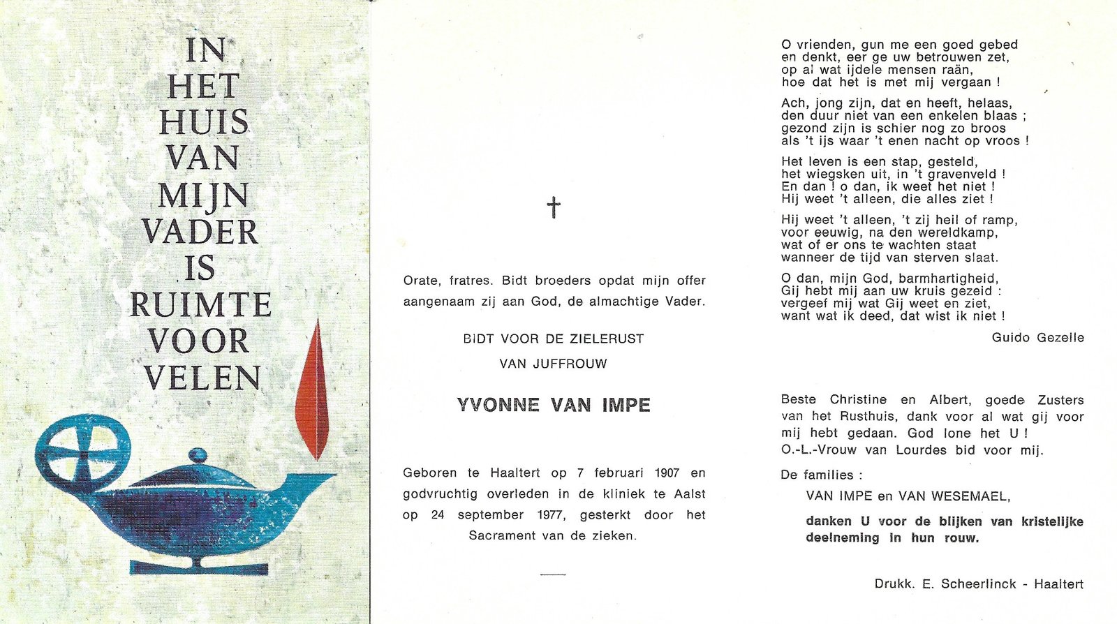 | Van Impe Yvonne | Haaltert | 07/02/1907 | Aalst | 24/09/1977 | |