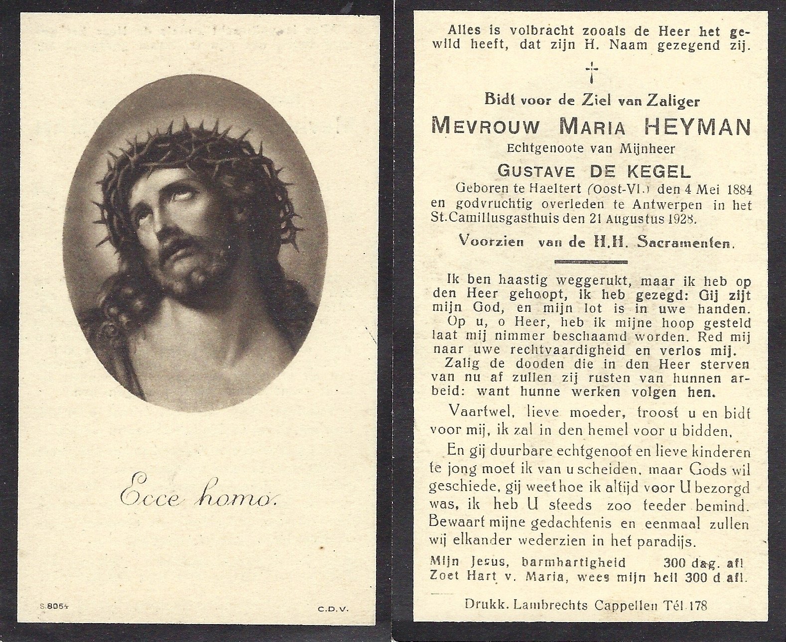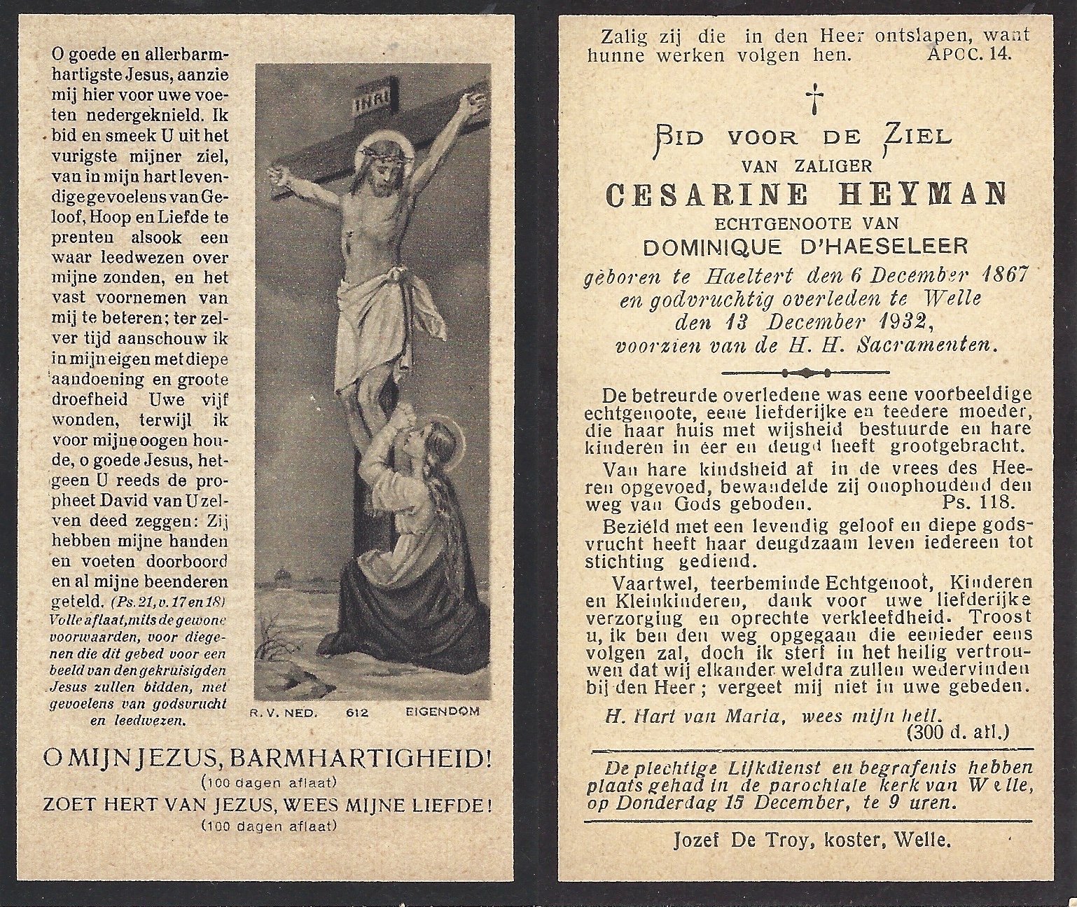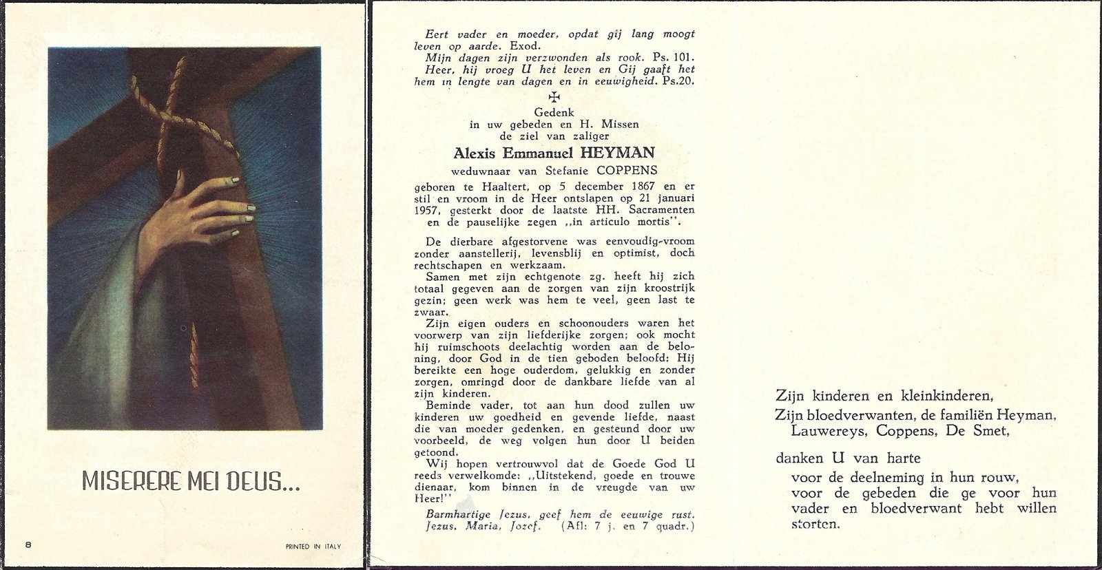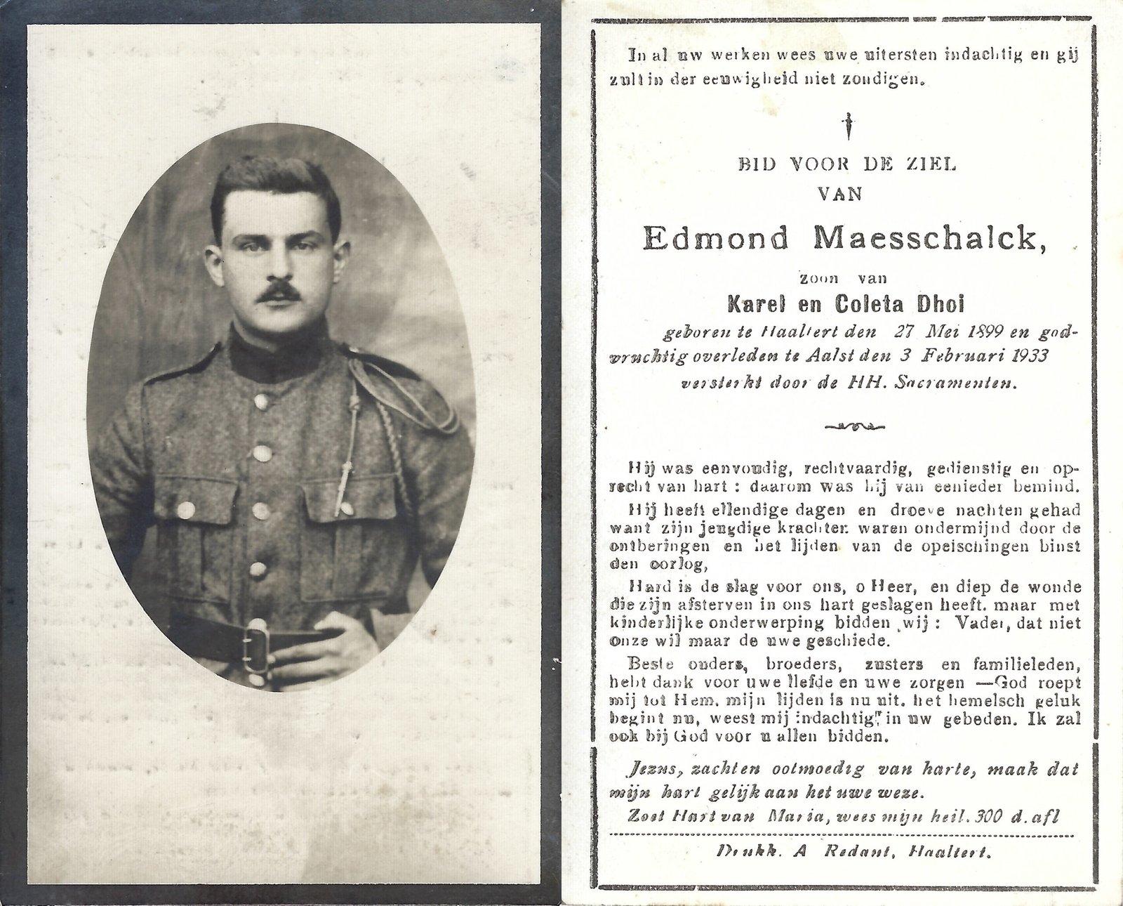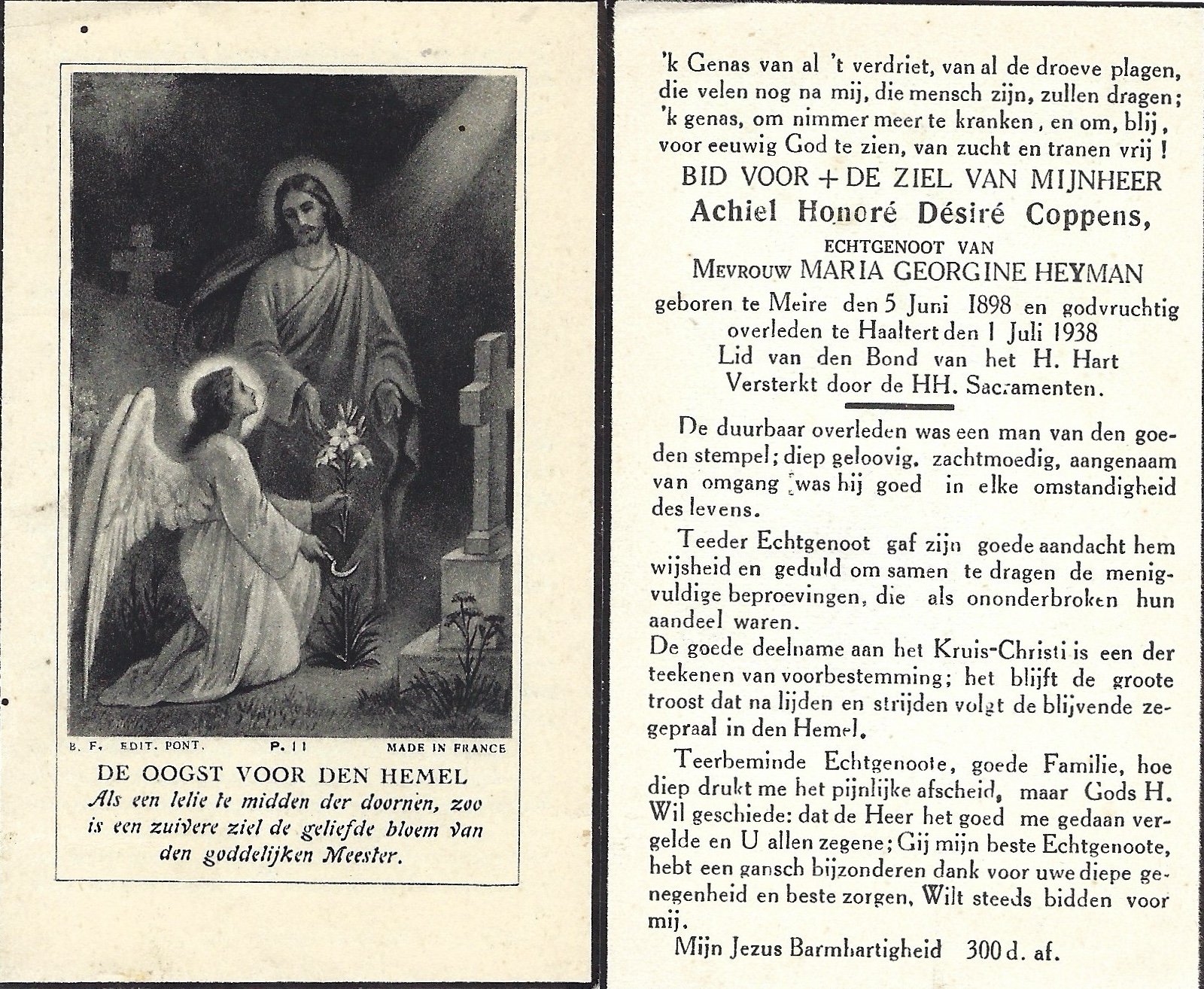 | Coppens Achiel Honoré Désiré | Heyman Maria Georgine | Mere | 05/06/1898 | Haaltert | 01/07/1938 |