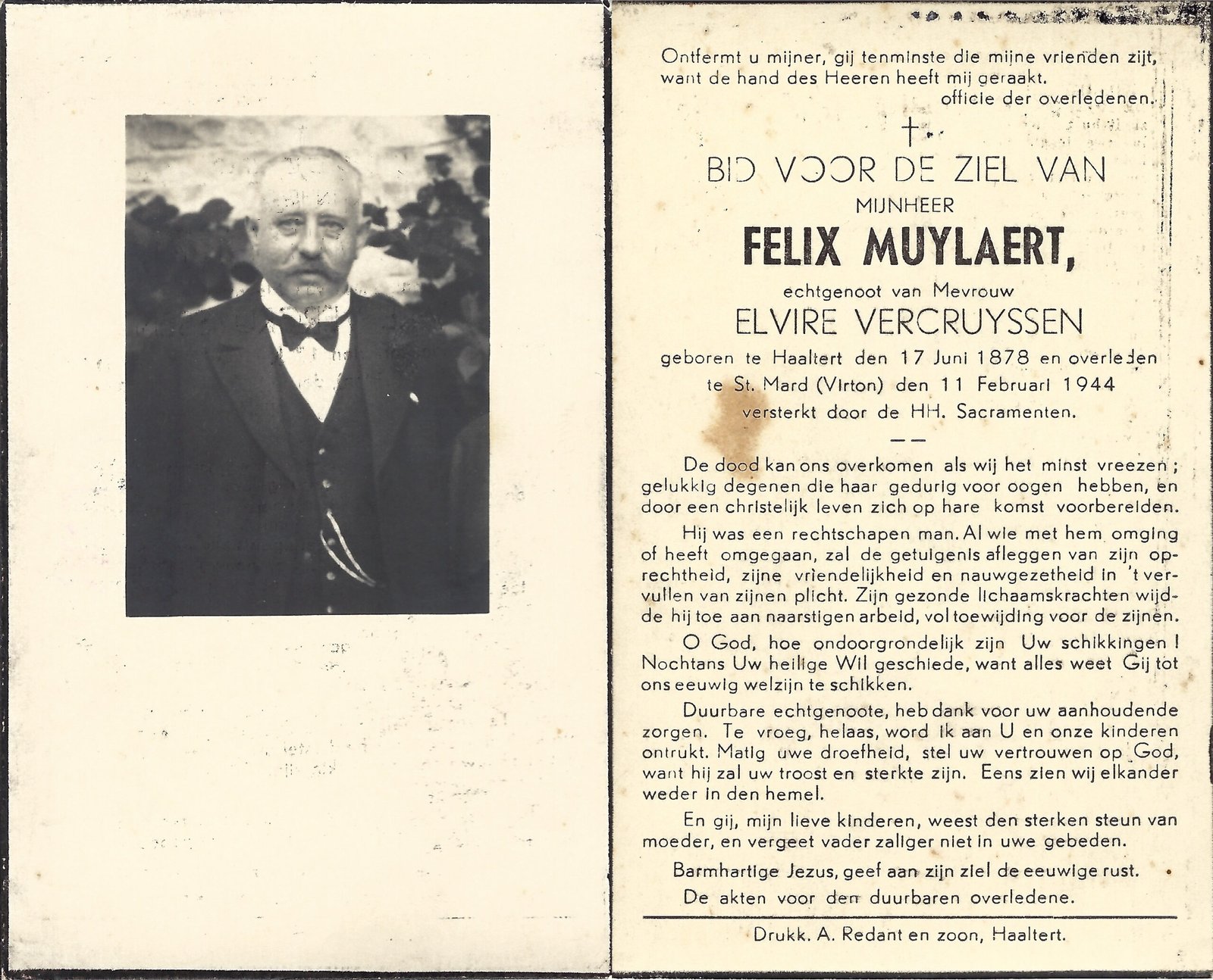 | Vercruyssen Maria-Elvira | Muylaert Felix | Haaltert | 01/03/1885 | Haaltert | 15/09/1954 |