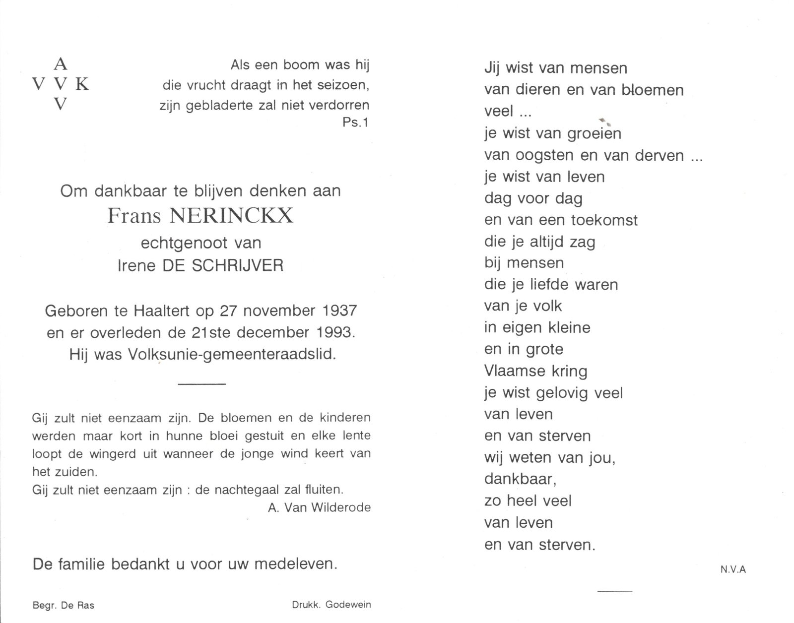 | Wyns Frans | Haaltert | 21/06/1932 | Aalst | 27/04/1977 | |