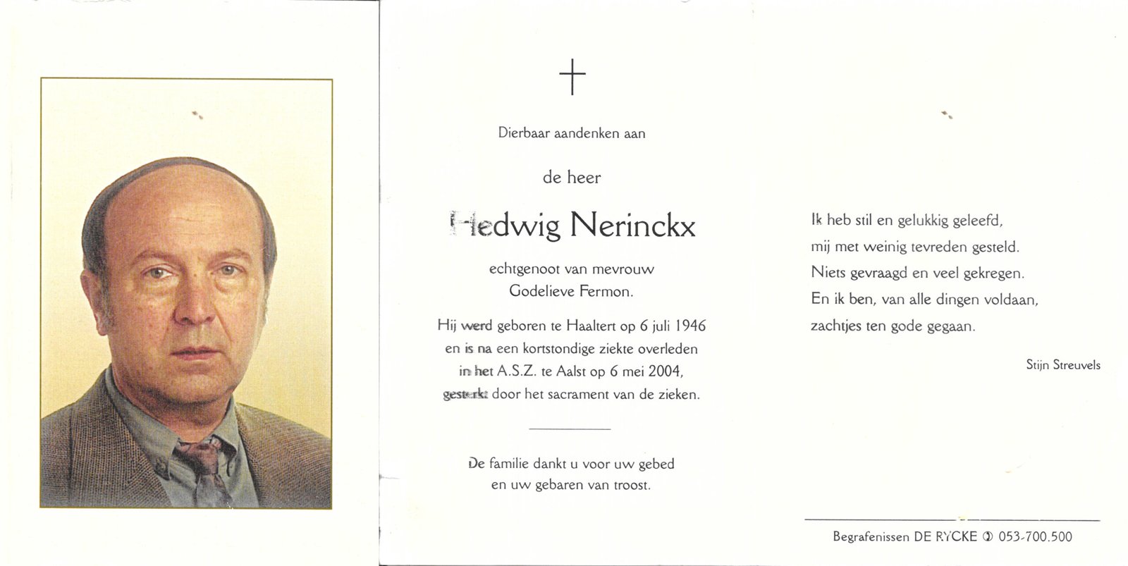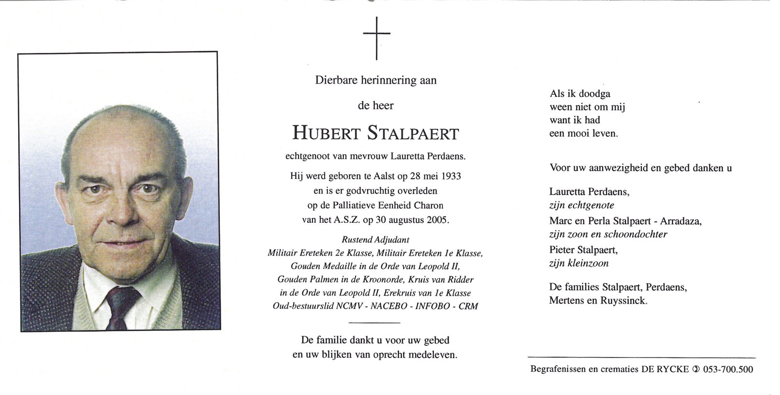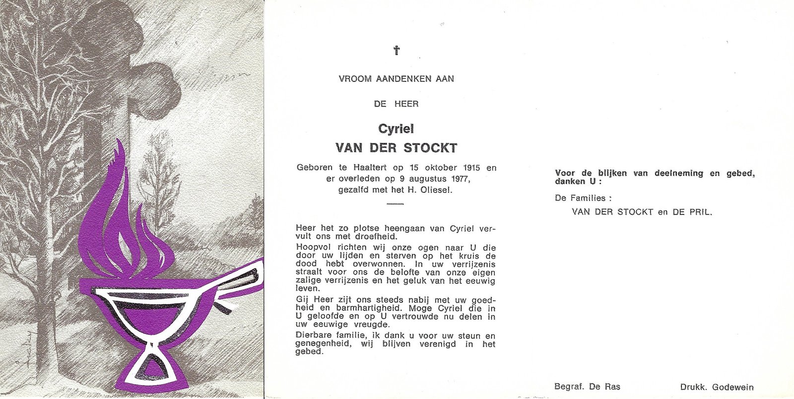 | Van Der Stockt Cyriel | Haaltert | 15/10/1915 | Haaltert | 09/08/1977 | |