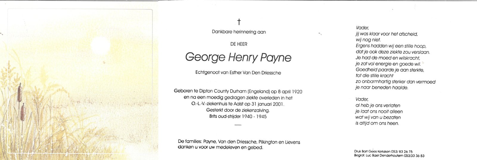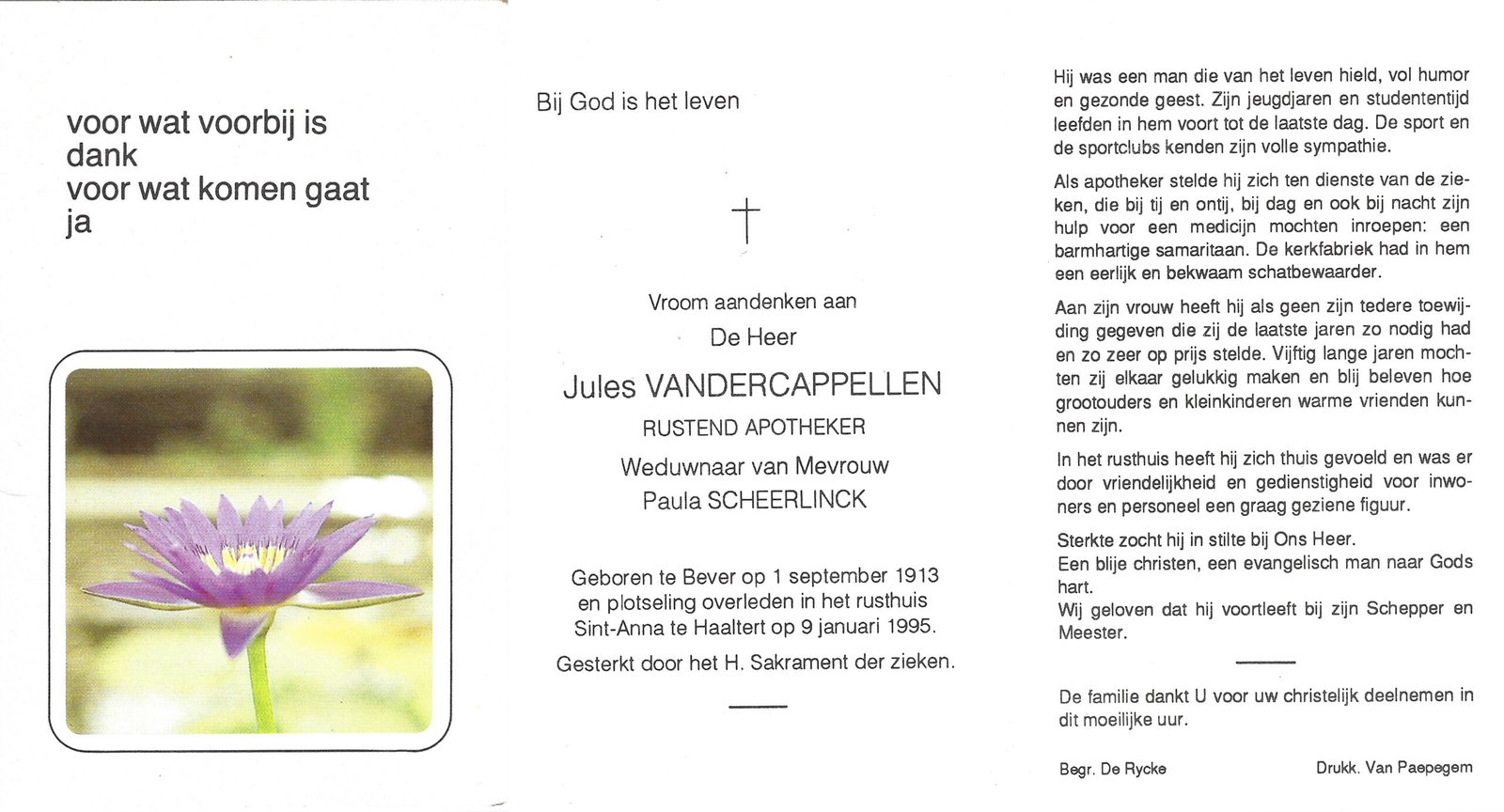 | Vandercappellen Jules | Scheerlinck Paula | Bever | 01/09/1913 | Haaltert | 09/01/1995 |