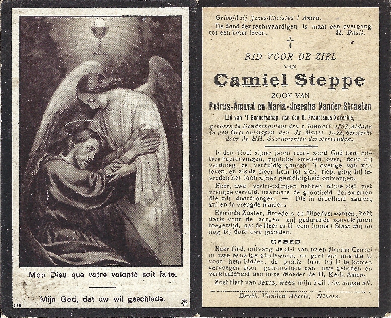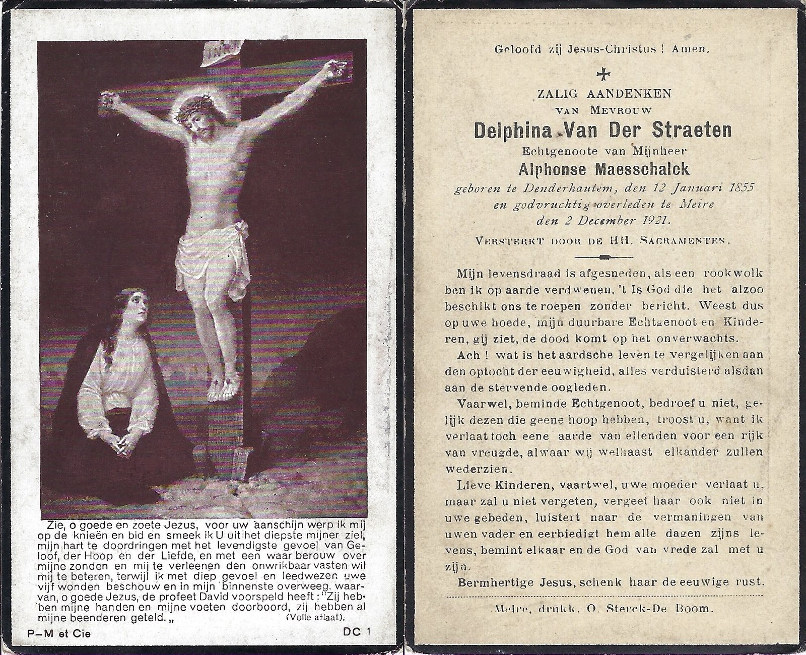 | Van Der Straeten Delphina | Maesschalck Alphonse | Denderhoutem | 12/01/1855 | Denderhoutem | 02/12/1921 |