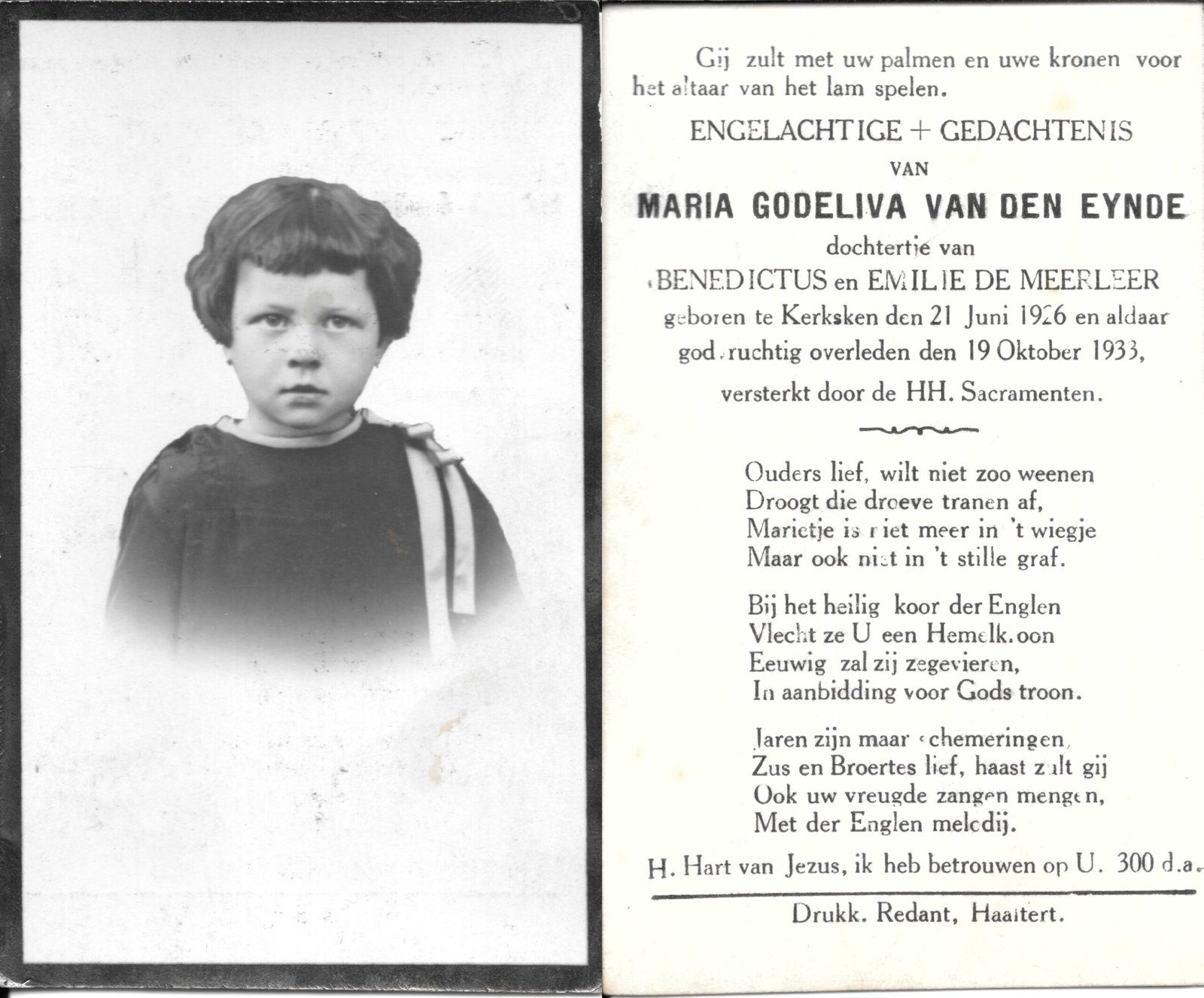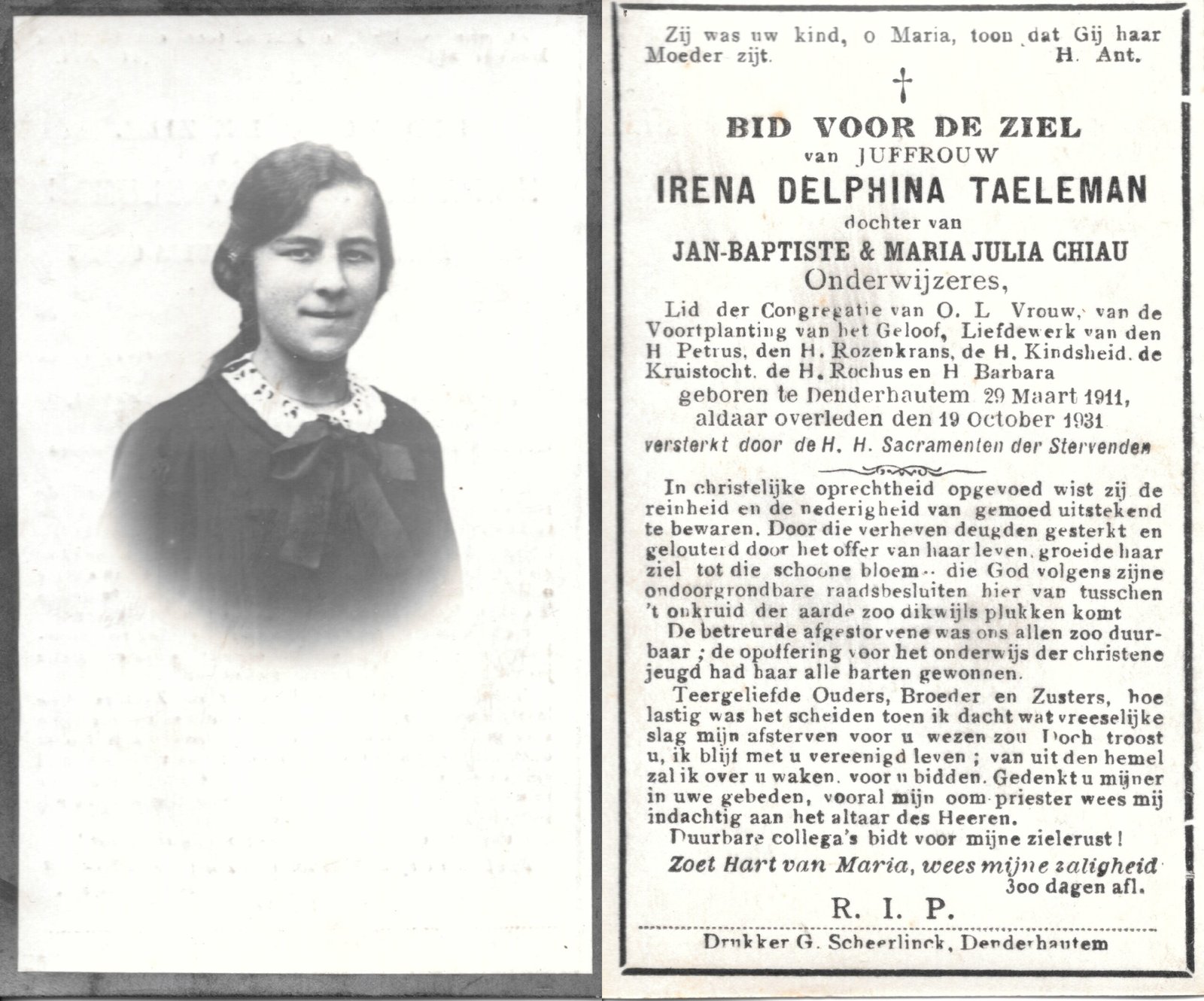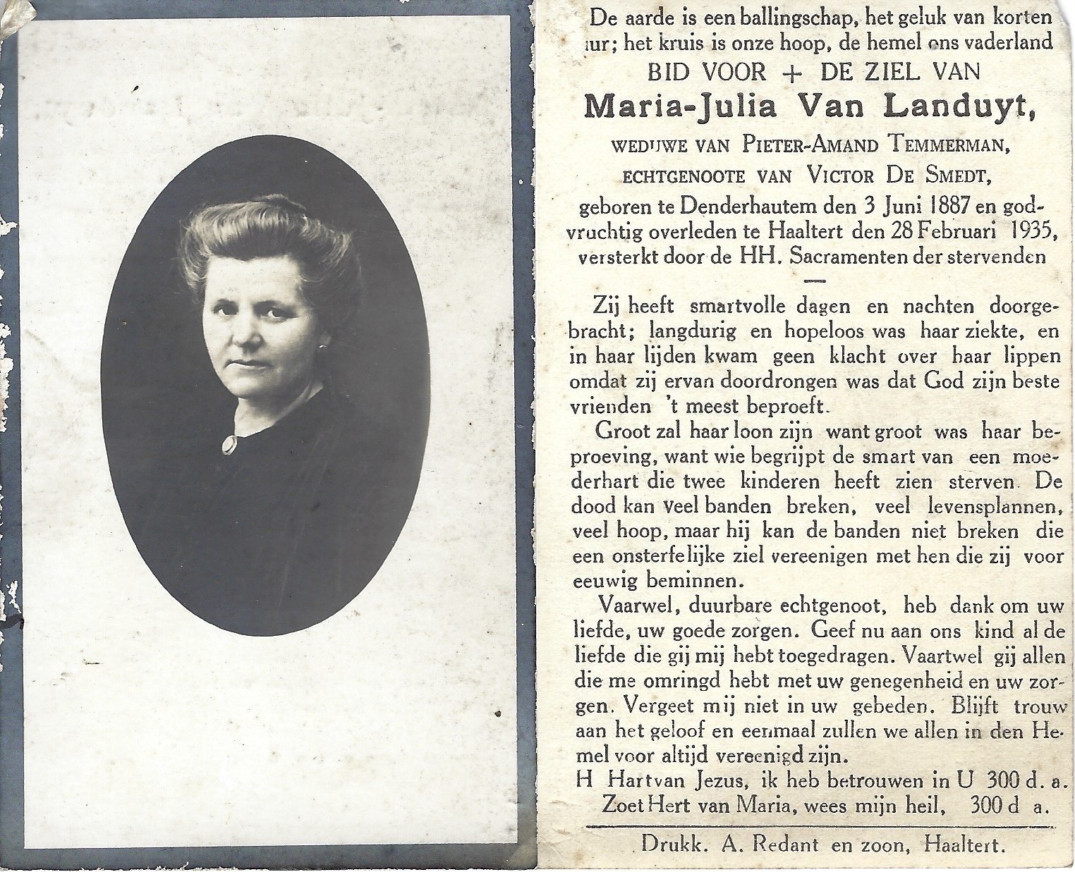 | Van Landuyt Maria-Julia | Temmerman Pieter-Amand en De Smedt Victor | Denderhoutem | 03/06/1887 | Haaltert | 28/02/1935 |