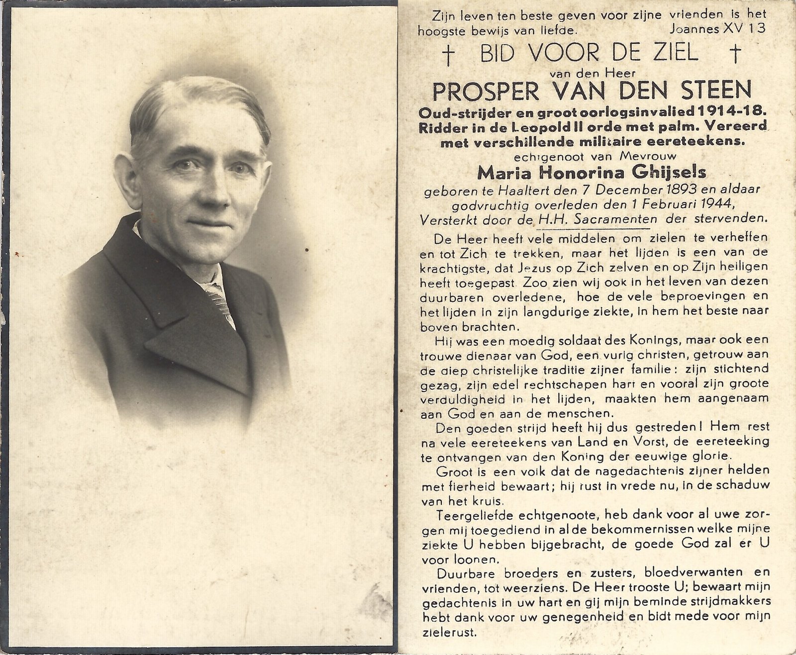 | Van Den Steen Prosper | Ghijsels Maria | Haaltert | 07/12/1893 | Haaltert | 01/02/1944 |