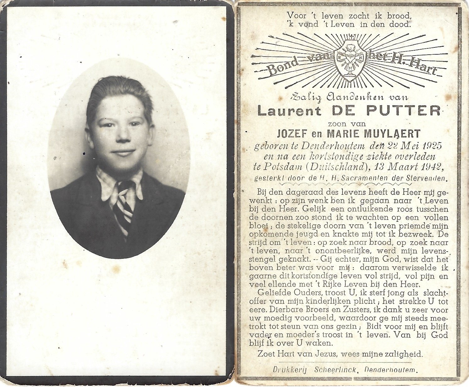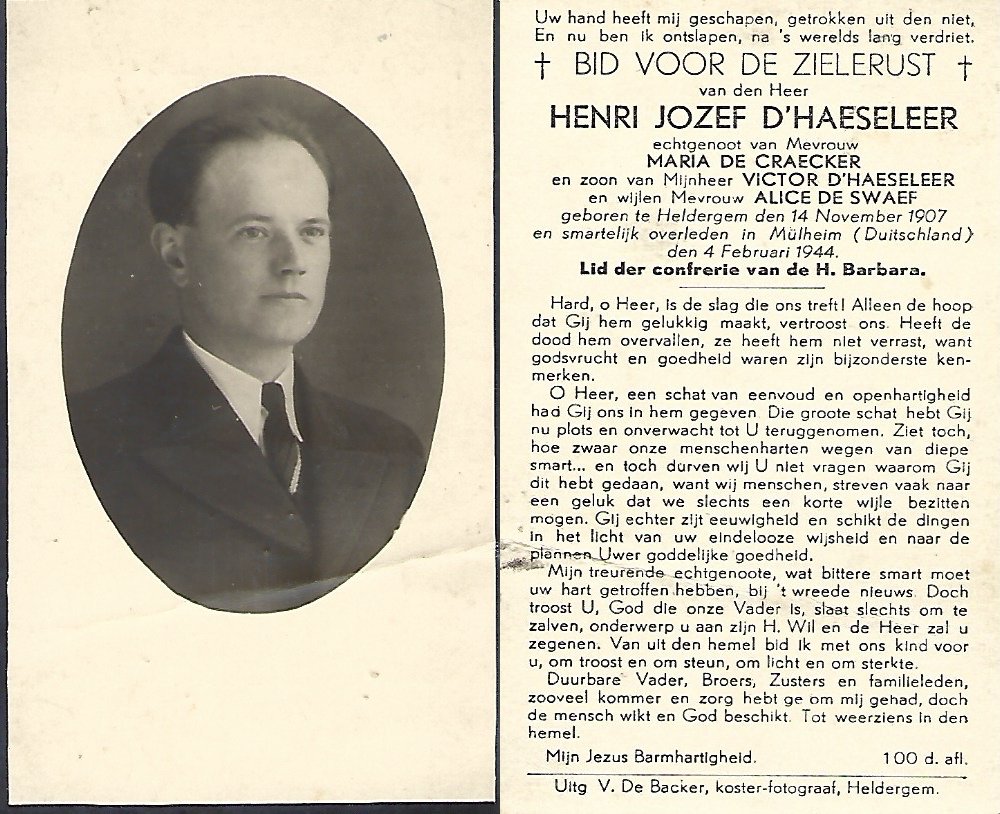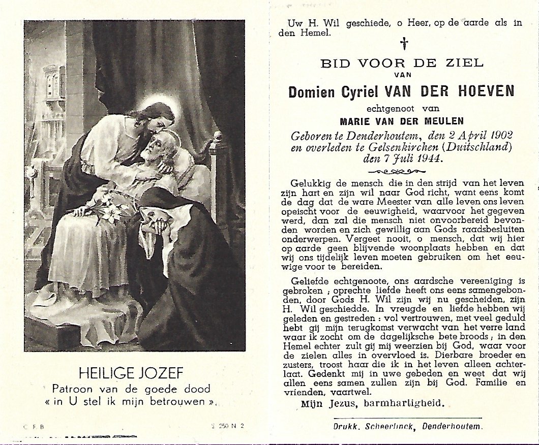 | Van Der Hoeven Domien Cyriel | Van Der Meulen Marie | Denderhoutem | 02/04/1902 | Gelsenkirchen (D) | 07/07/1944 |