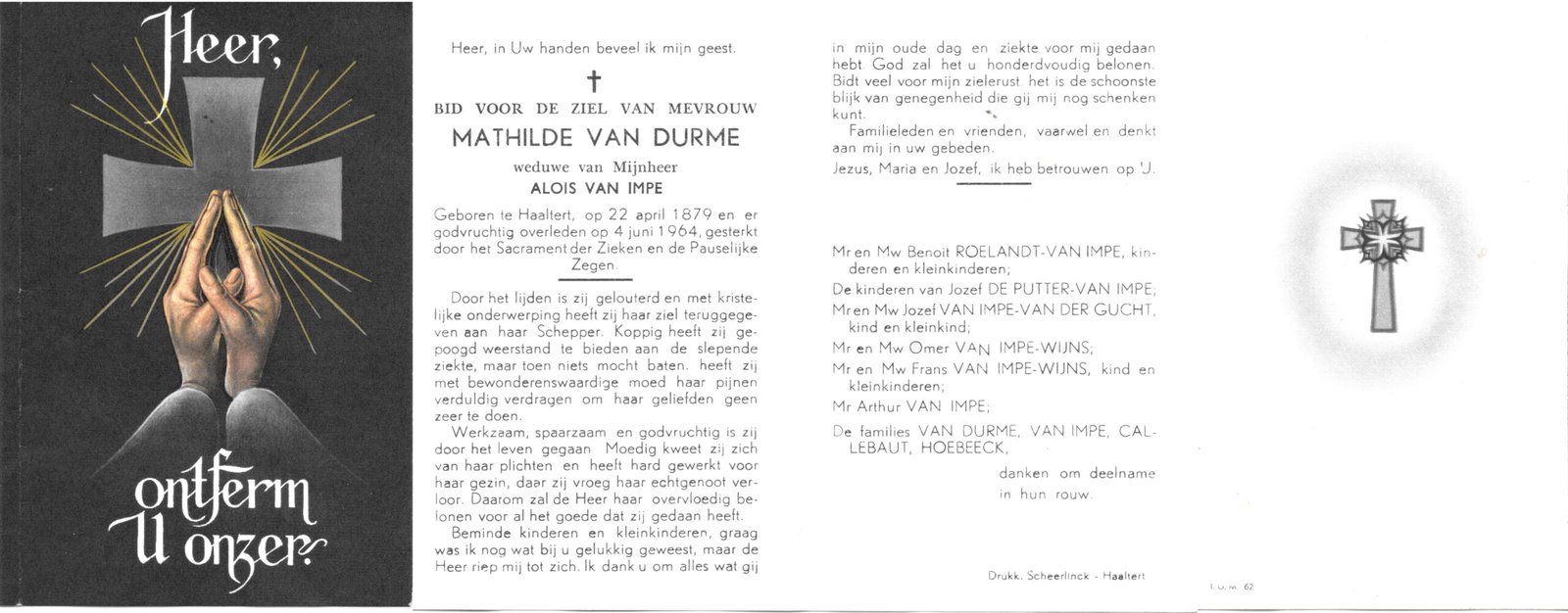 | Van Durme Mathilde | Van Impe AloĂŻs | Haaltert | 22/04/1879 | Haaltert | 04/06/1964 |
