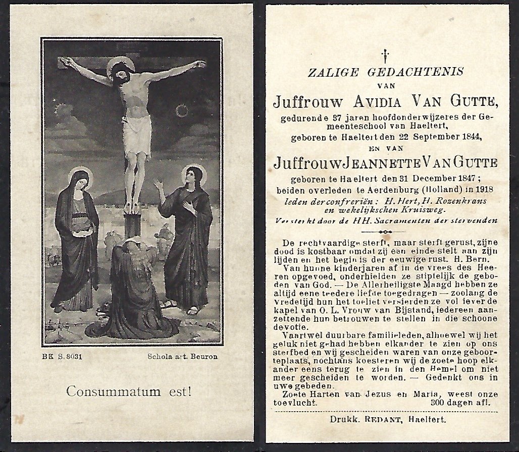 | Van Gutte Jeannette | Haaltert | 31/12/1847 | Aardenburg (Nl) | 03/05/1918 | |