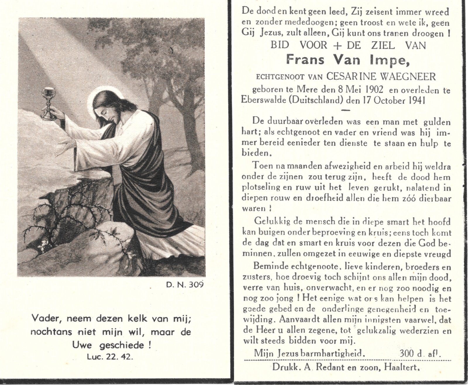 | Van Impe Frans | Waegneer Cesarine | Mere | 08/05/1902 | Eberswalde (D) | 17/10/1941 |