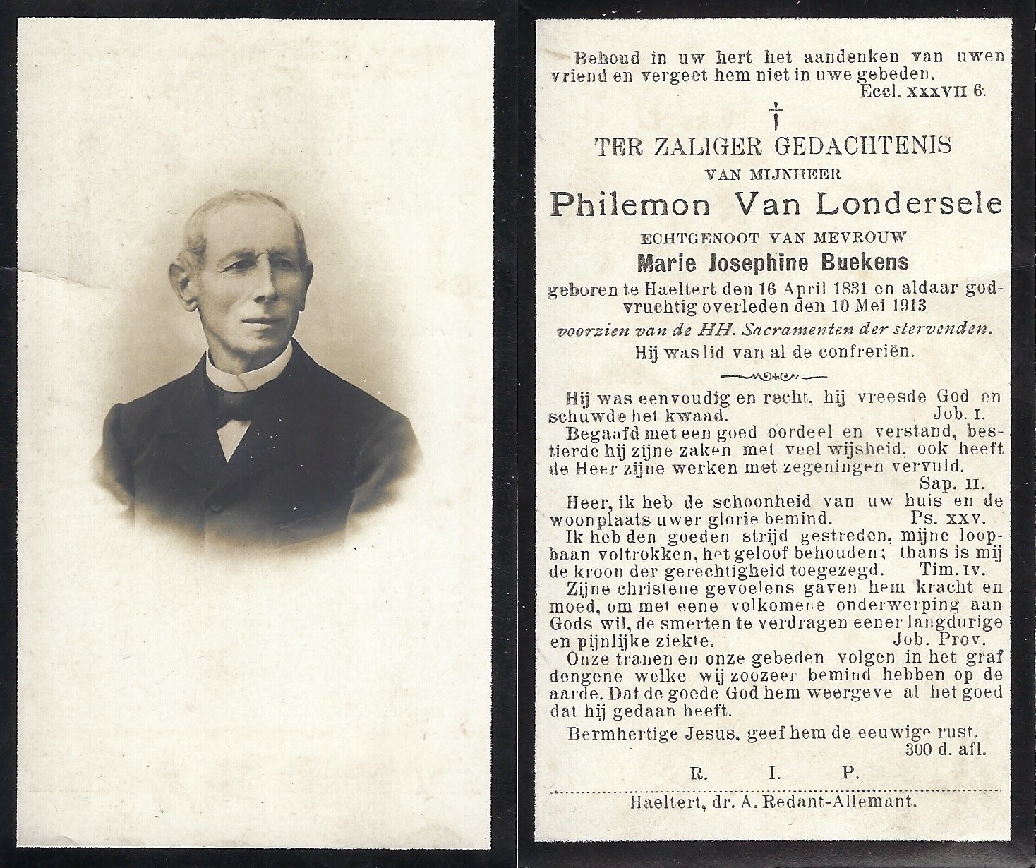 | Van Londersele Philemon | Buekens Josehine | Haaltert | 16/04/1831 | Haaltert | 10/05/1913 |