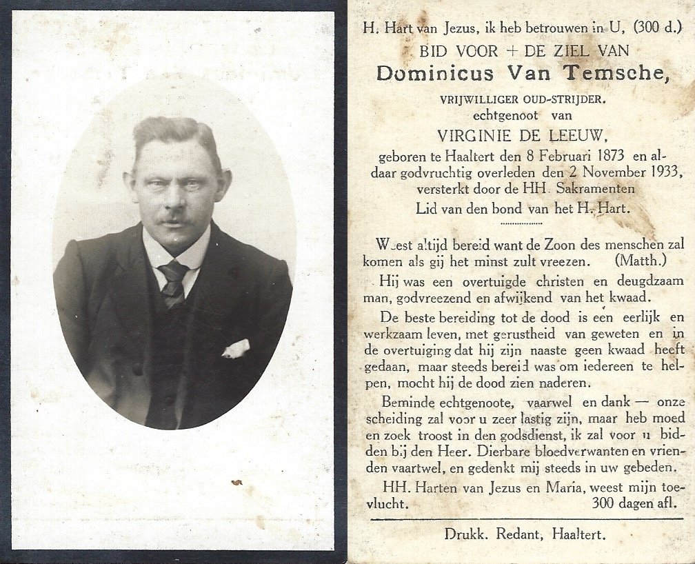 | Van Temsche Dominicus | De Leeuw Virginie | Haaltert | 08/02/1873 | Haaltert | 02/11/1933 |