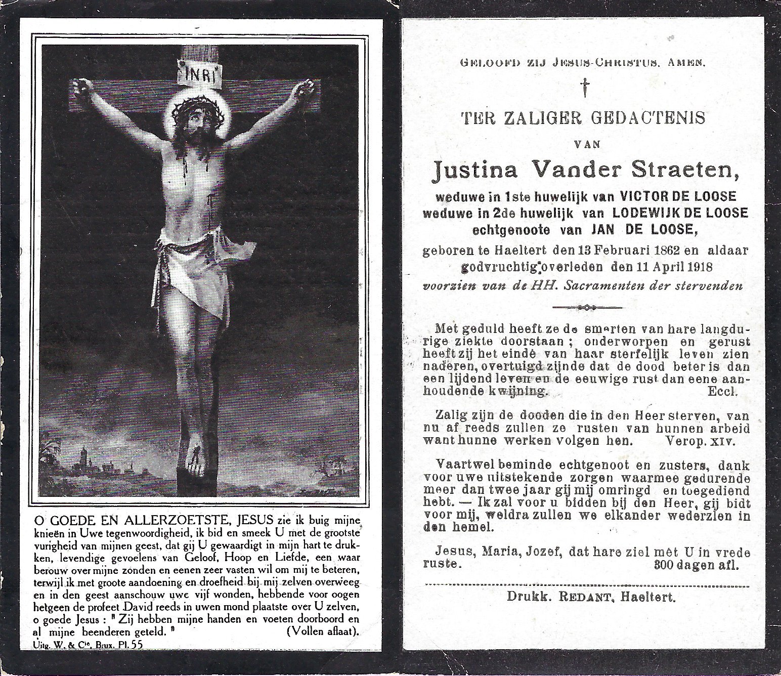 | Vander Straeten Justina | Victor De Loose, Lodewijk De Loose en Jan De Loose | Haaltert | 13/02/1862 | Haaltert | 11/04/1918 |