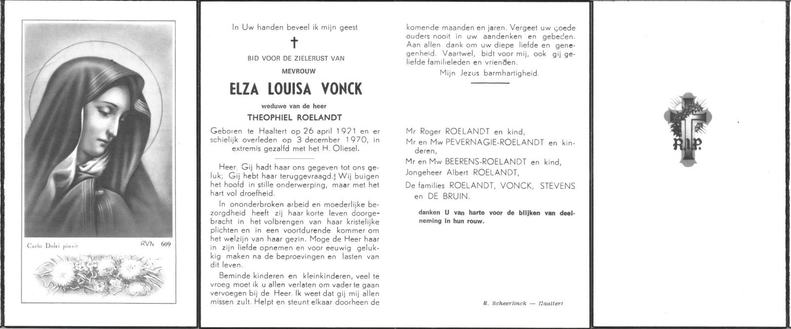 | Vonck Elza Louisa | Roelandt Theophiel | Haaltert | 26/04/1921 | Haaltert | 03/12/1970 |
