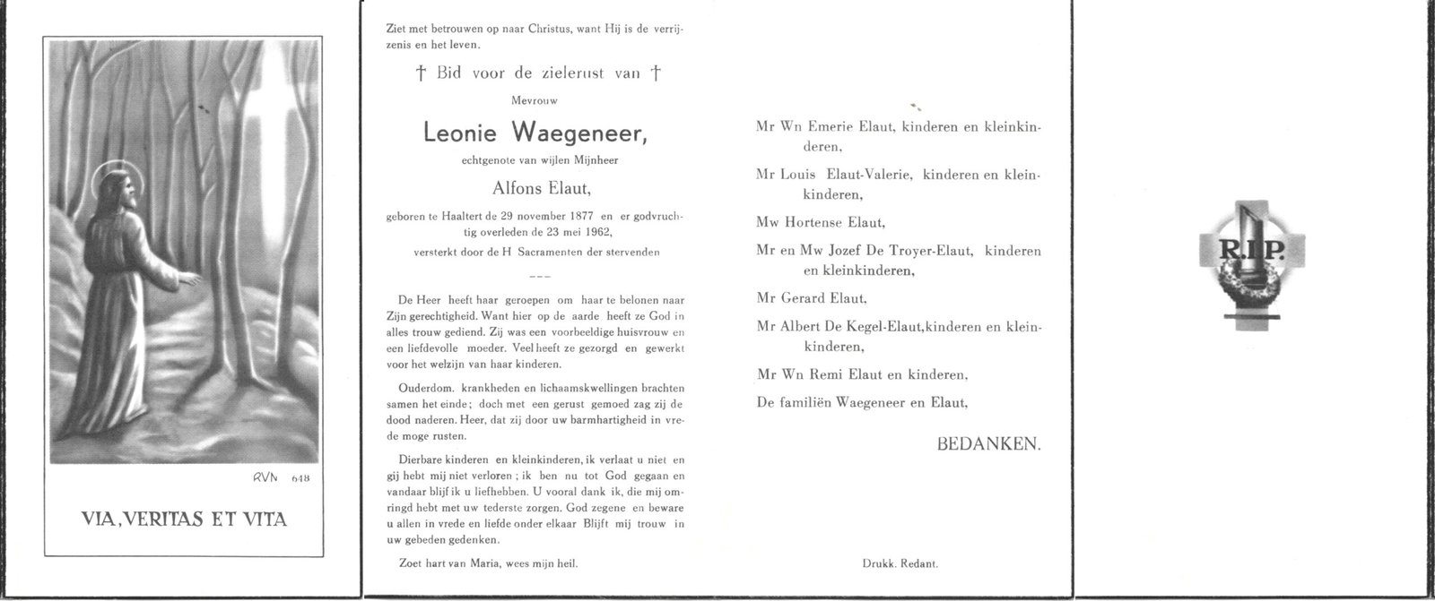 | Waegneer Leonie | Elaut Alfons | Haaltert | 29/11/1877 | Haaltert | 23/05/1962 |