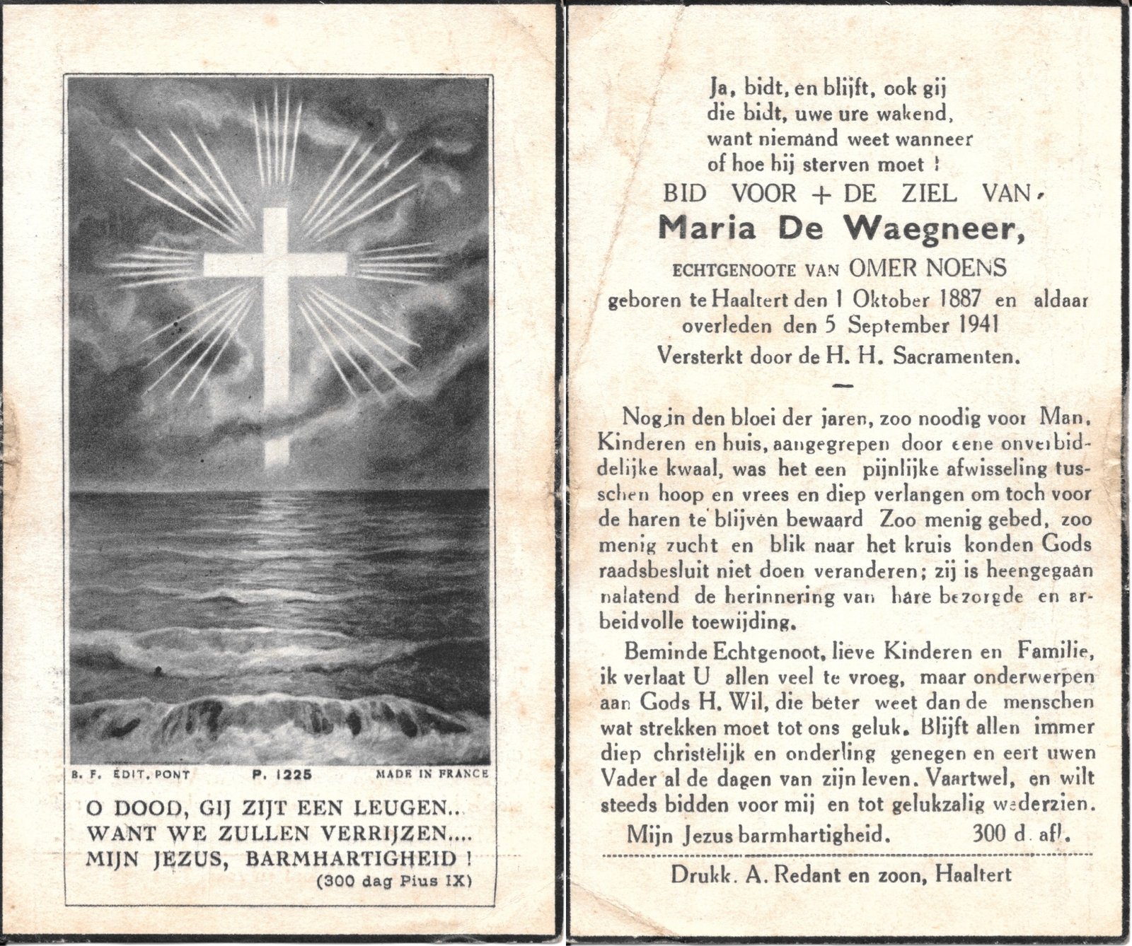 | (De) Waegneer Maria | Noens Omer | Haaltert | 01/10/1887 | Haaltert | 05/09/1941 |