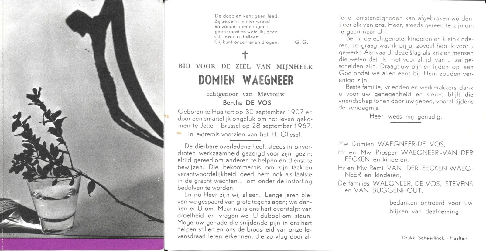 | Waegneer Domien | De Vos Bertha | Haaltert | 30/09/1907 | Jette | 28/09/1967 |