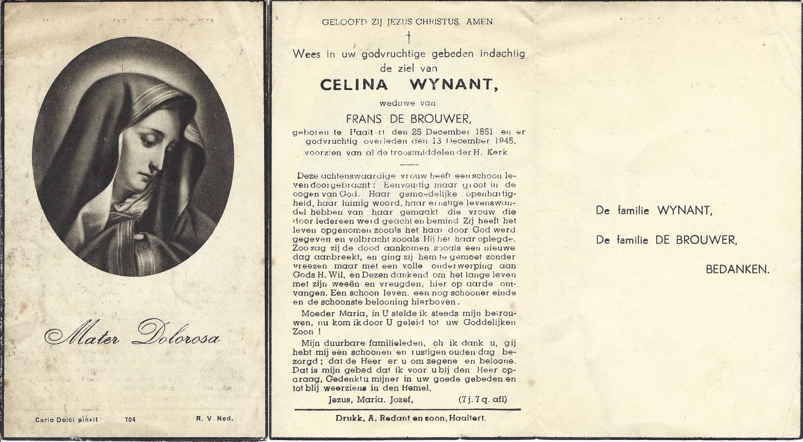 | Wynant Celina | De Brouwer Frans | Haaltert | 25/12/1851 | Haaltert | 13/12/1945 |