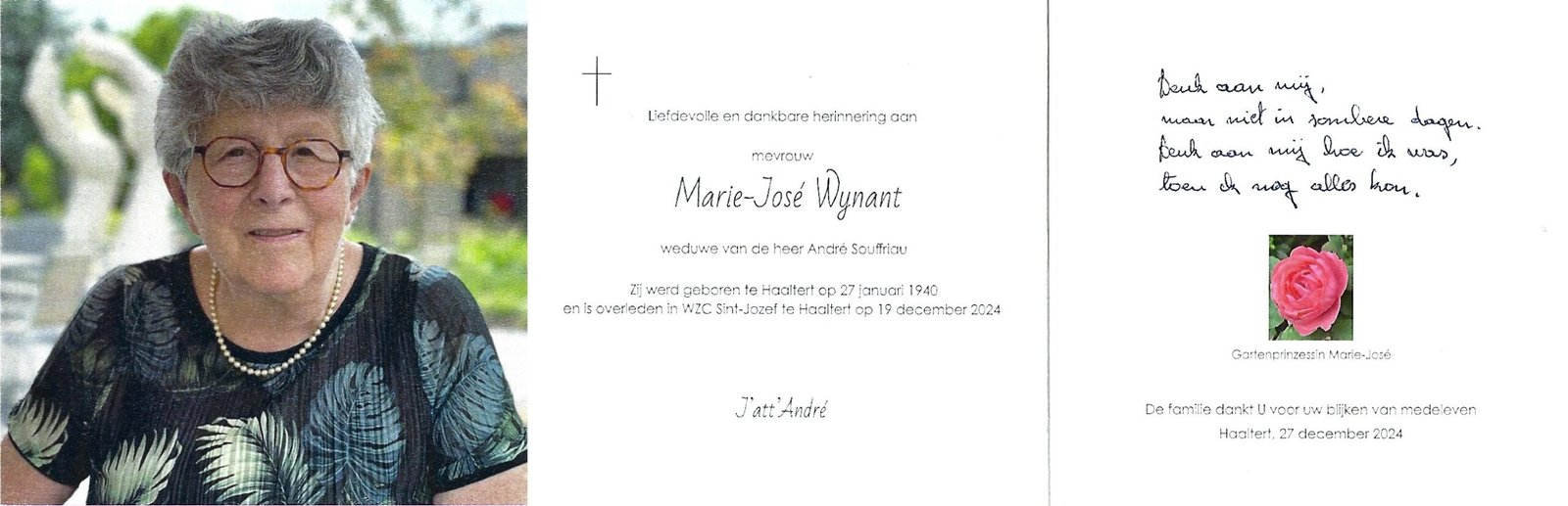 | Wynant Marie-José | Souffriau André | Haaltert | 27/01/1940 | Haaltert | 19/12/2024 |