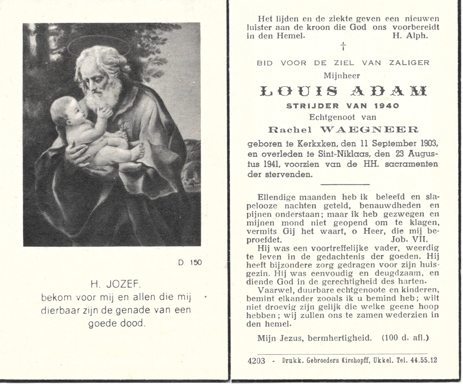 | Adam Louis | Waegneer Rachel | Kerksken | 11/09/1903 | Sint-Niklaas | 23/08/1941 |