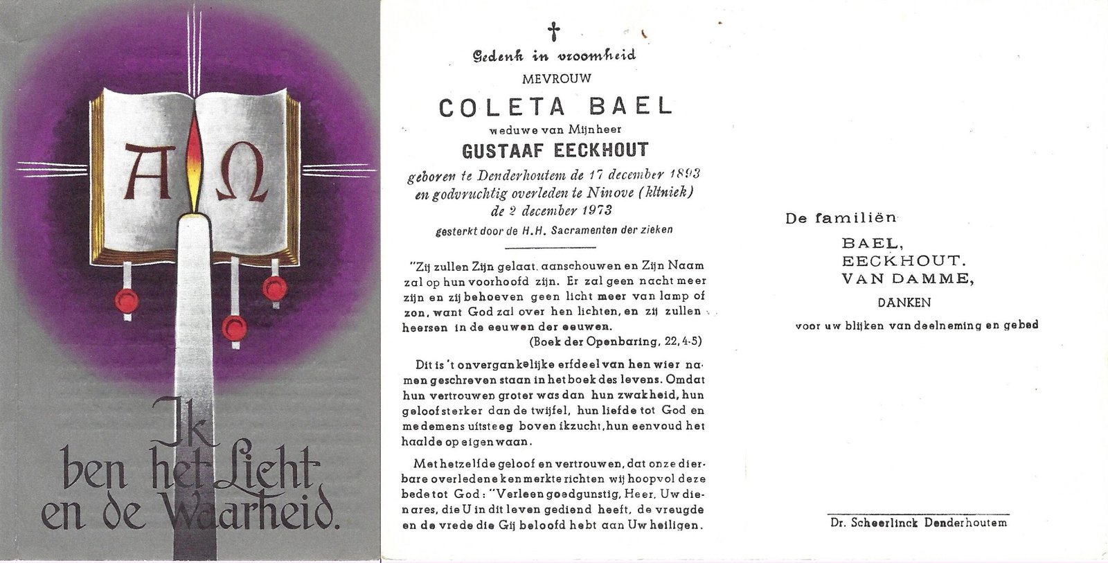 | Bael Coleta | Eeckhout Gustaaf | Denderhoutem | 17/12/1893 | Ninove | 02/12/1973 |