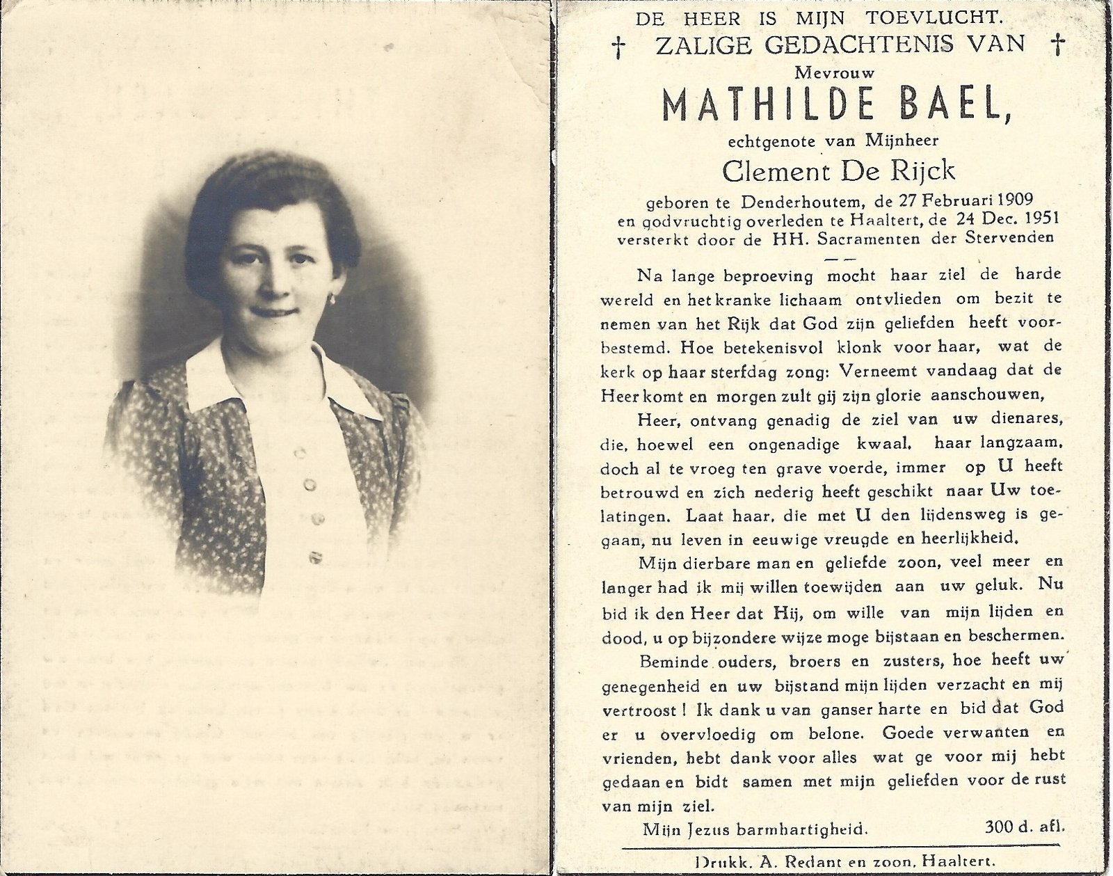 | Bael Mathilde | De Rijck Clement | Denderhoutem | 27/02/1909 | Haaltert | 24/12/1951 |
