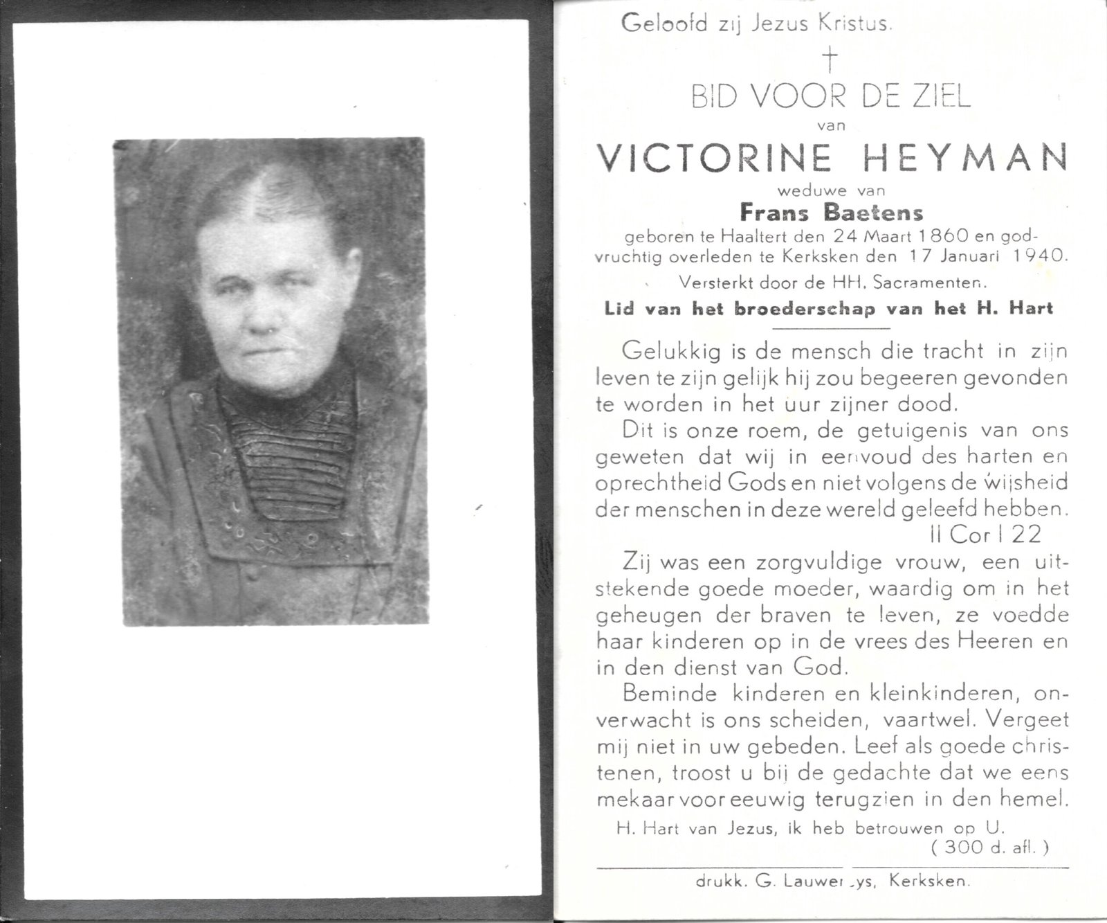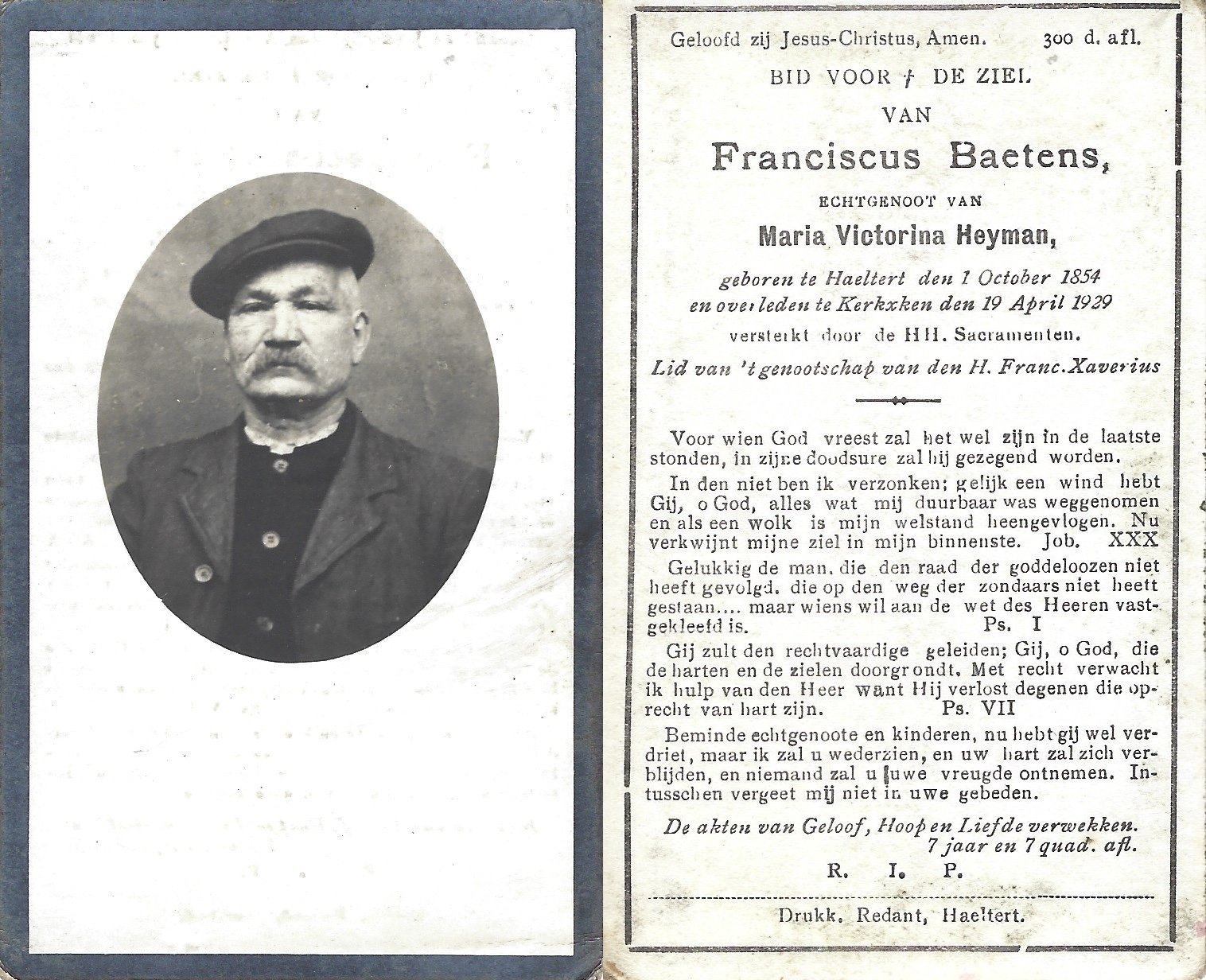 | Baetens Franciscus | Heyman Maria Victorina | Haaltert | 01/10/1854 | Kerksken | 19/04/1929 |
