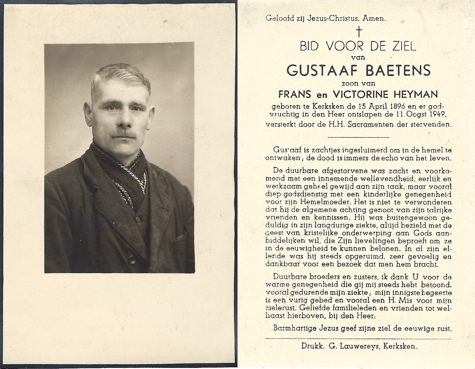 | Baetens Gustaaf | Kerksken | 15/04/1896 | Kerksken | 11/08/1949 | |