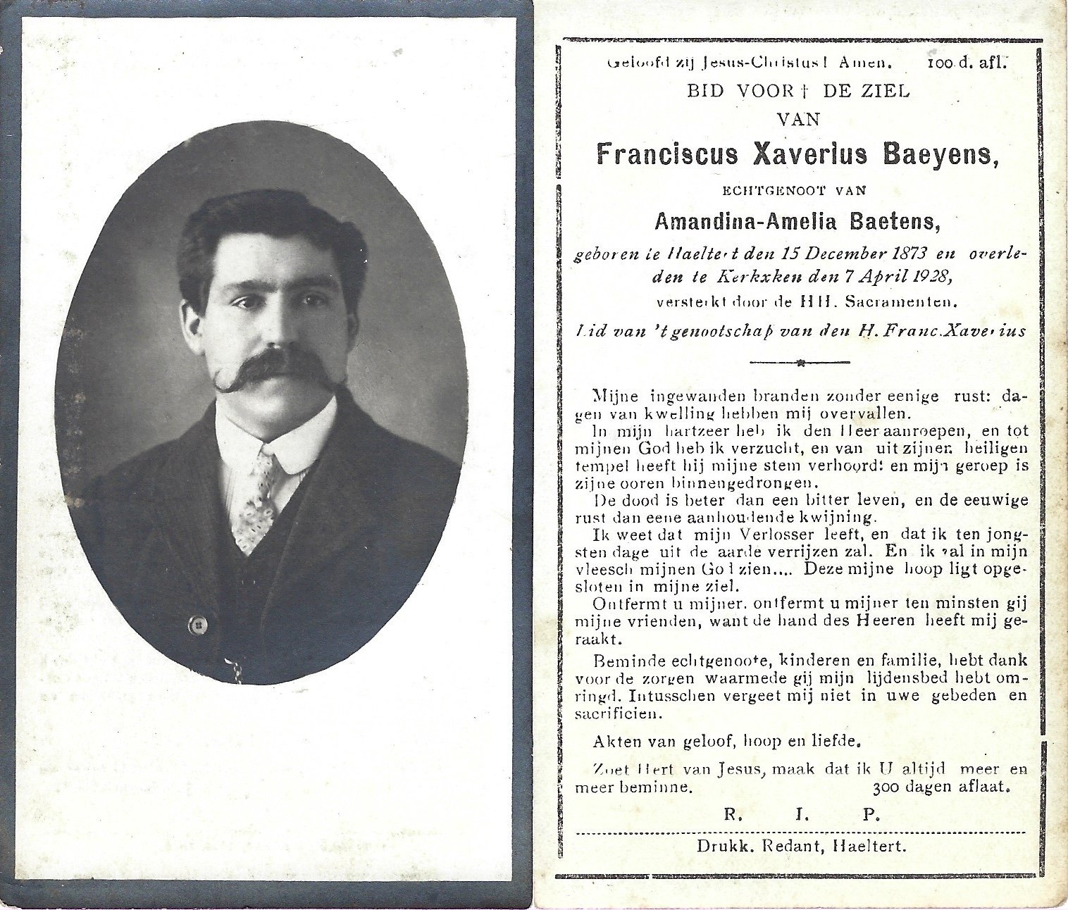 | Baeyens Franciscus Xaverius | Baetens Amandina-Amelia | Haaltert | 15/12/1873 | Kerksken | 07/04/1928 |