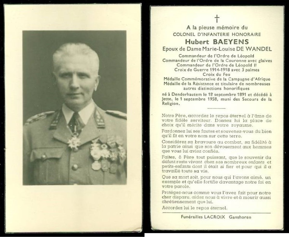 | Baeyens Hubert | De Wandel Marie-Louise | Denderhoutem | 18/09/1891 | Jette | 01/09/1958 |