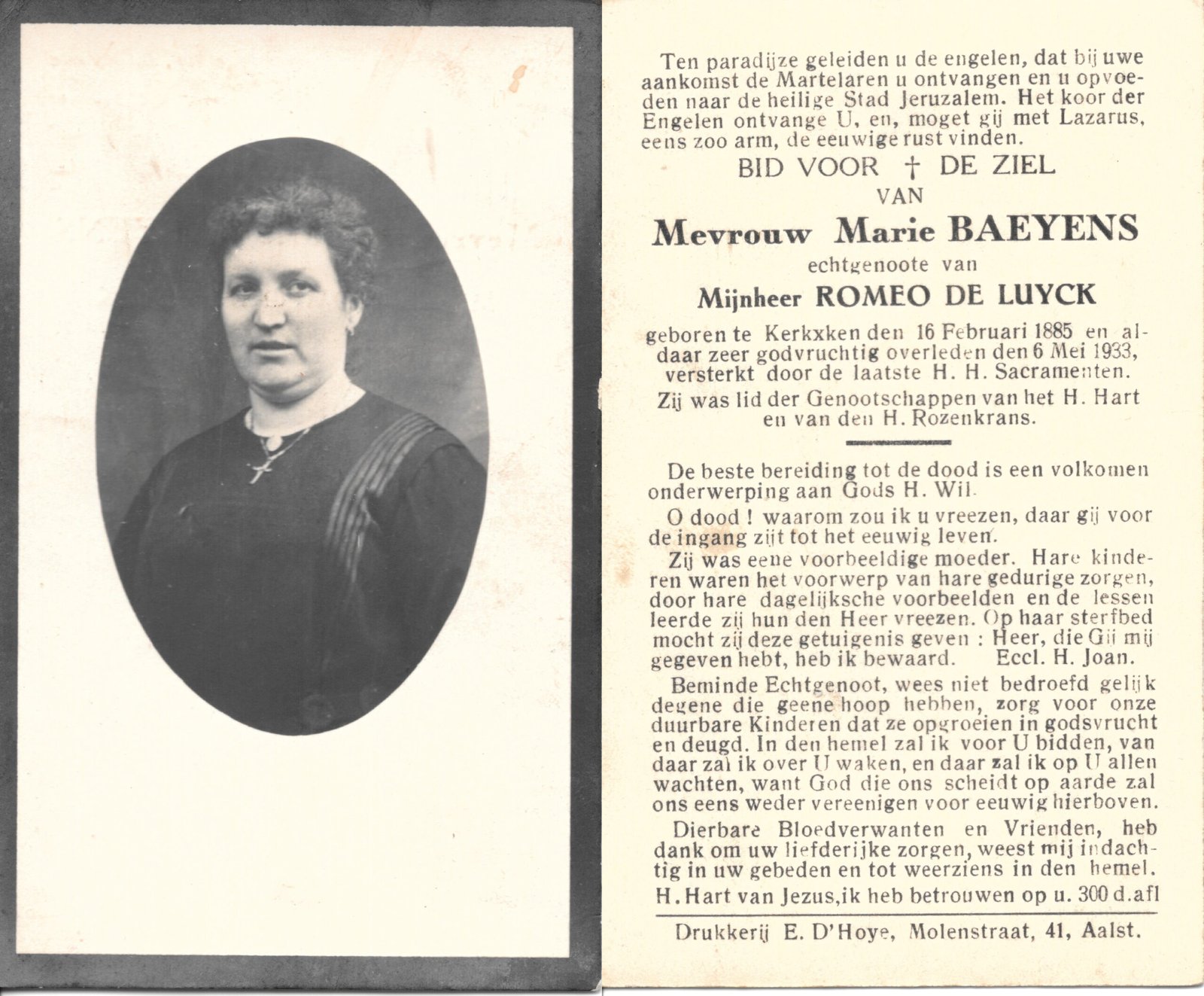 | Baeyens Marie | De Luyck Romeo | Kerksken | 16/02/1885 | Kerksken | 06/05/1933 |