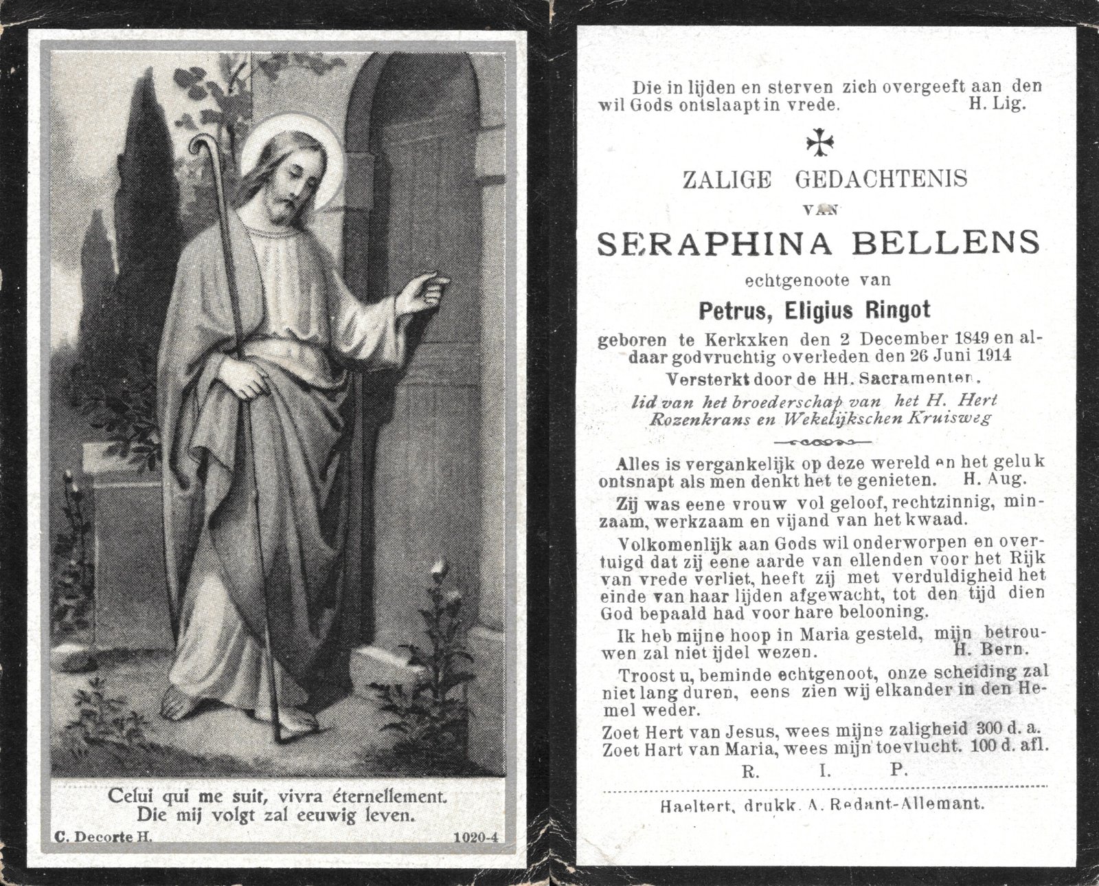 | Bellens Seraphina | Ringot PetrusEligius | Kerksken | 02/12/1849 | Kerksken | 26/06/1914 |