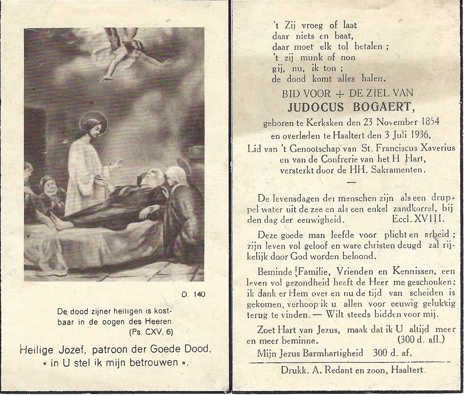 | Bogaert Judocus | Kerksken | 23/11/1854 | Haaltert | 03/07/1936 | |