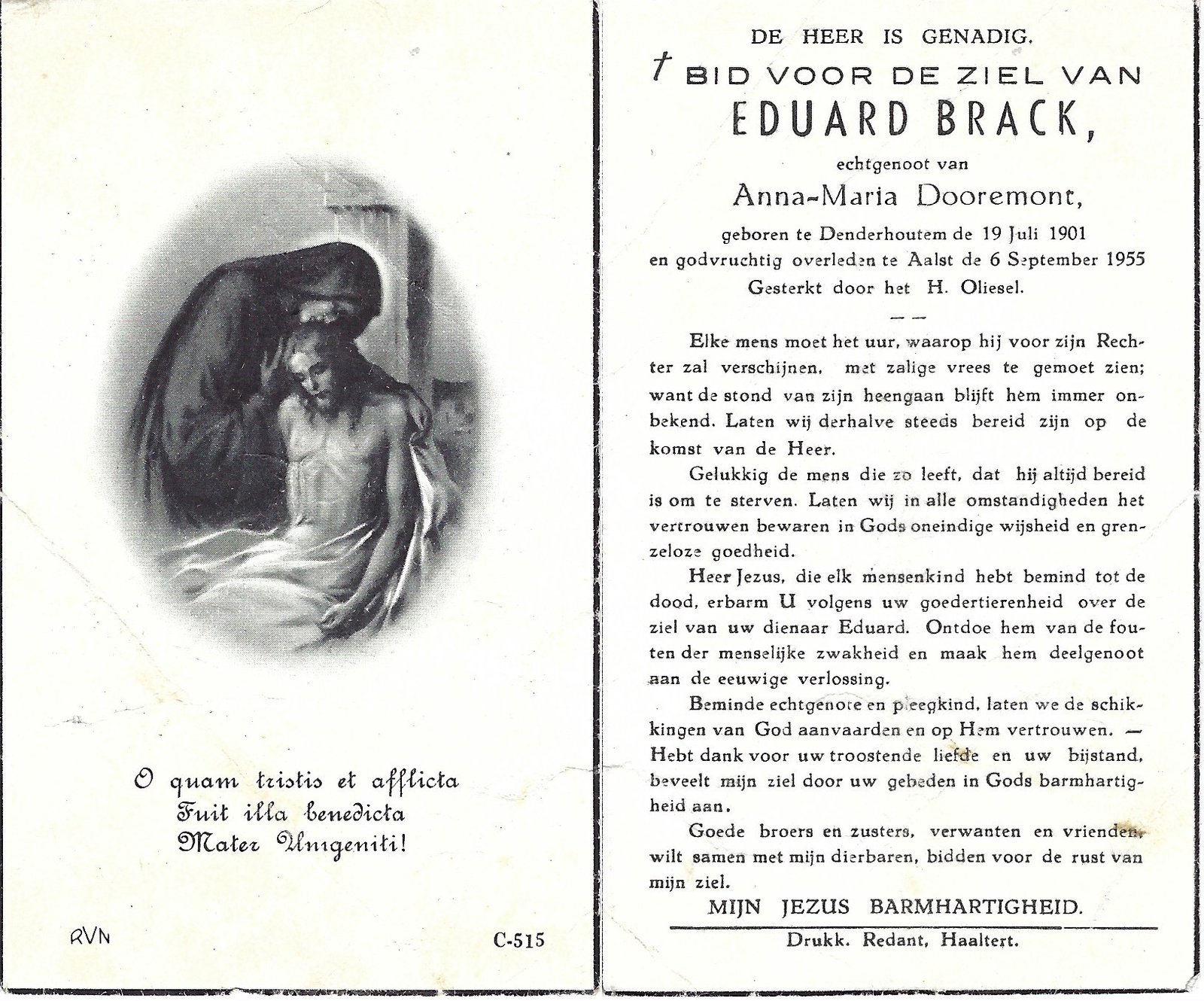 | Brack Eduard | Dooremont Anna-Maria | Denderhoutem | 19/07/1901 | Aalst | 06/09/1955 |