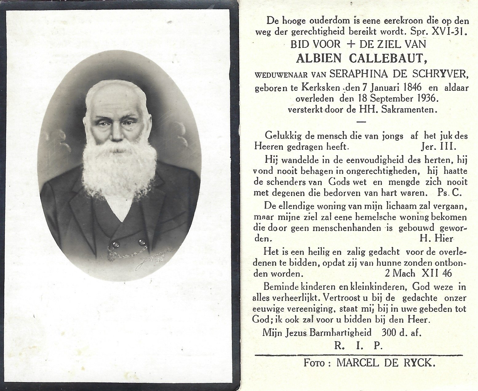 | Callebaut Albien | De Schryver Seraphina | Kerksken | 07/01/1846 | Kerksken | 18/09/1936 |