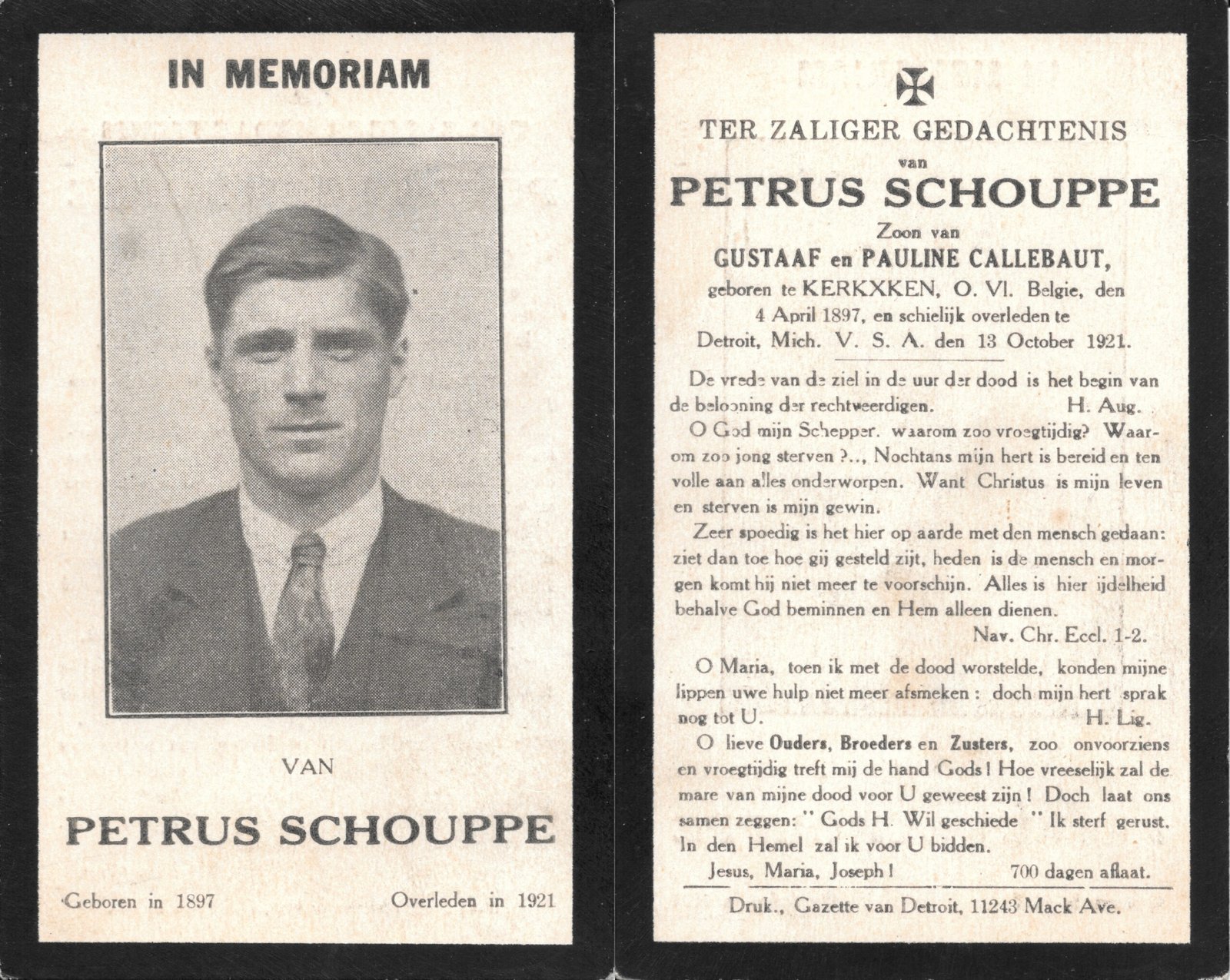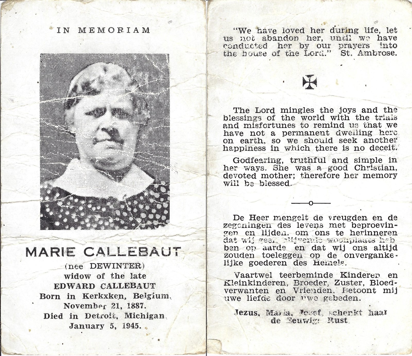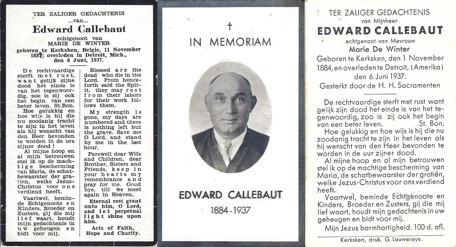 | Callebaut Edward | De Winter Marie | Kerksken | 01/11/1884 | Detroit | 06/06/1937 |