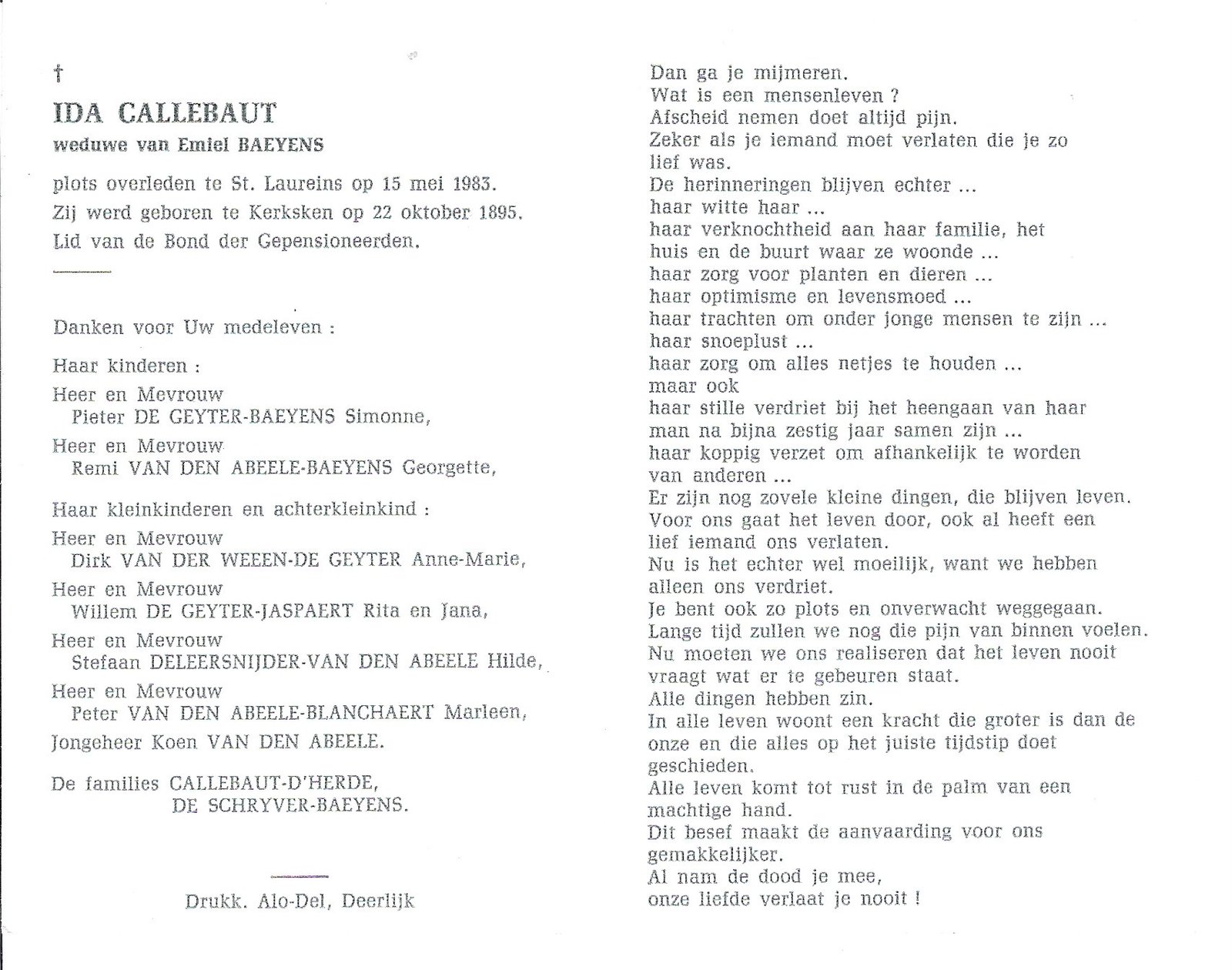 | Baeyens Emiel | Callebaut Ida | Kerksken | 06/11/1900 | Aalst | 10/01/1979 |