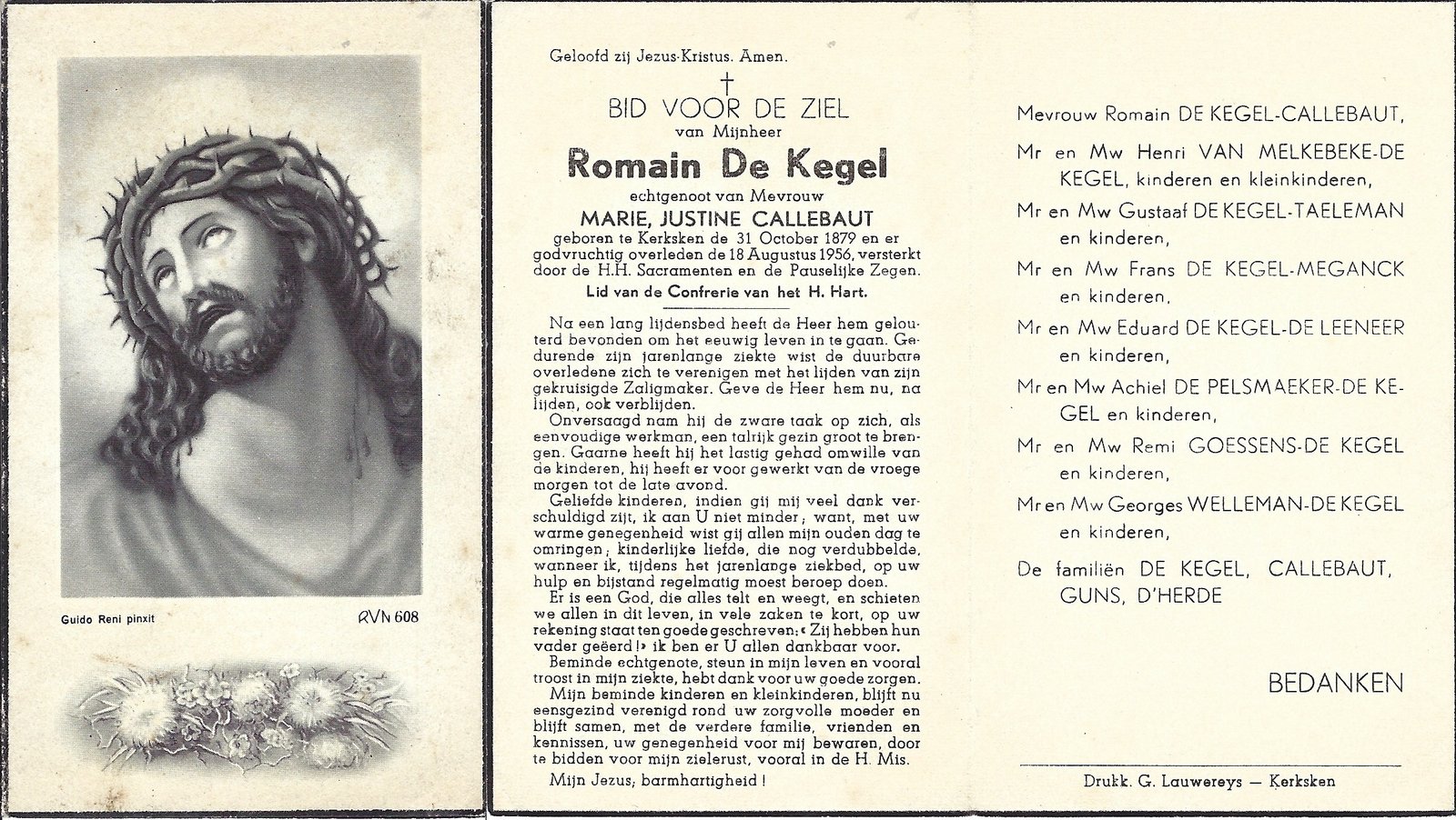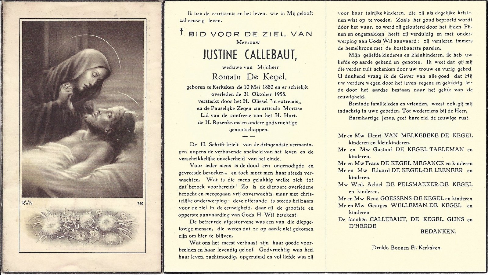 | Callebaut Justine | De Kegel Romain | Kerksken | 10/05/1880 | Kerksken | 31/10/1958 |
